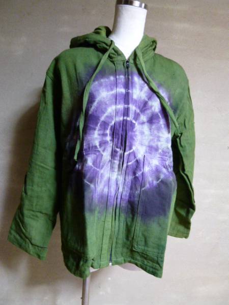 コットンで作られたパーカーを絞り染めしました