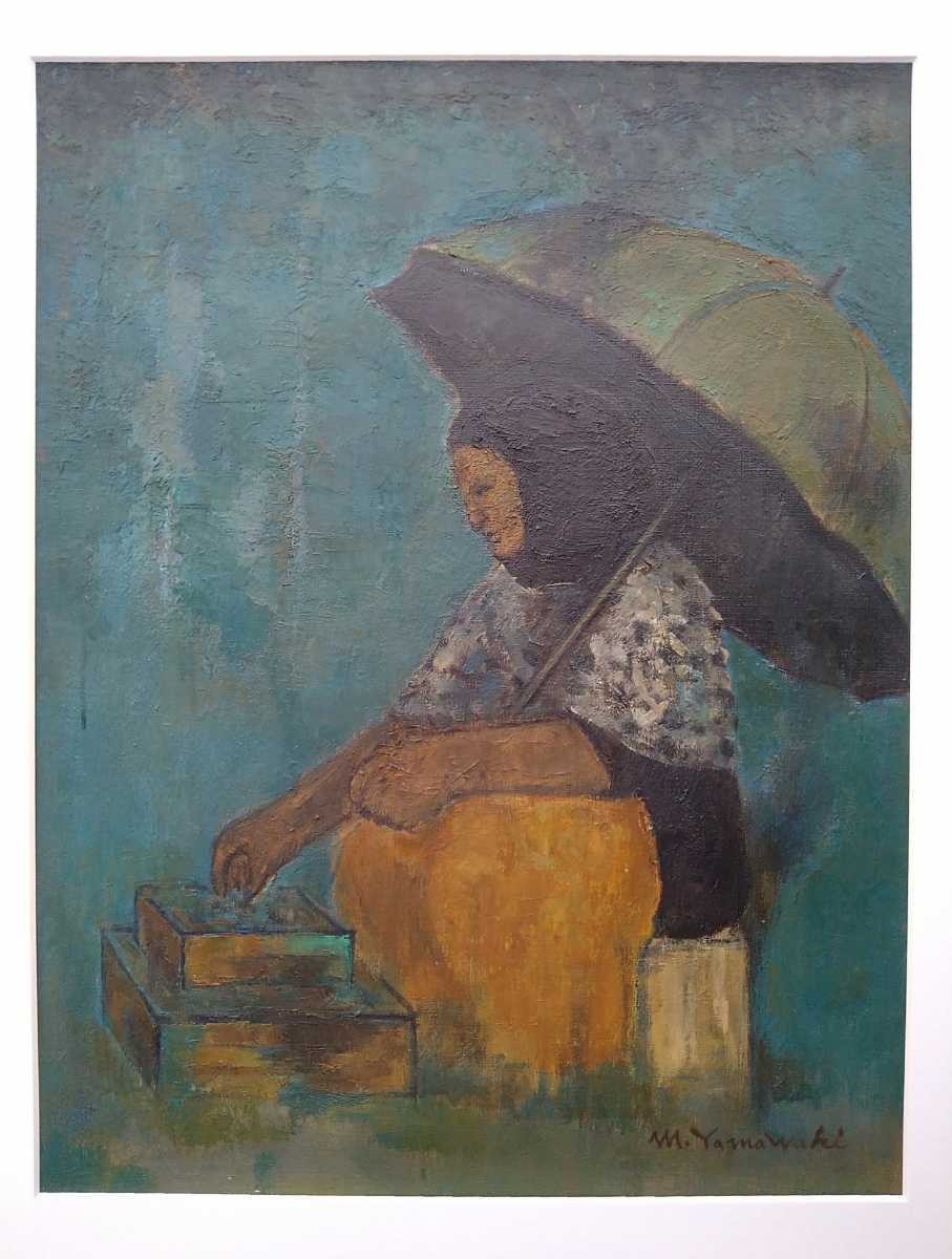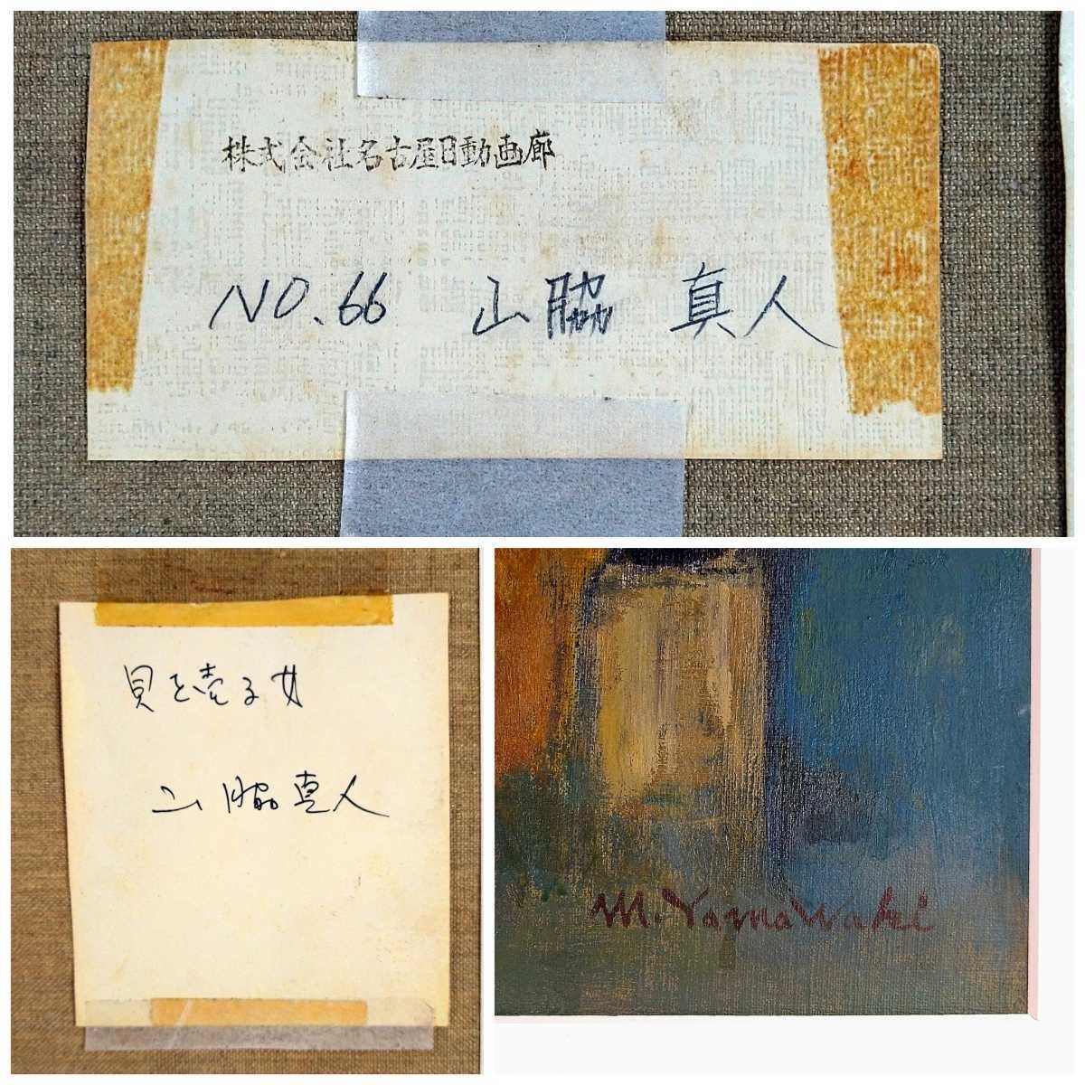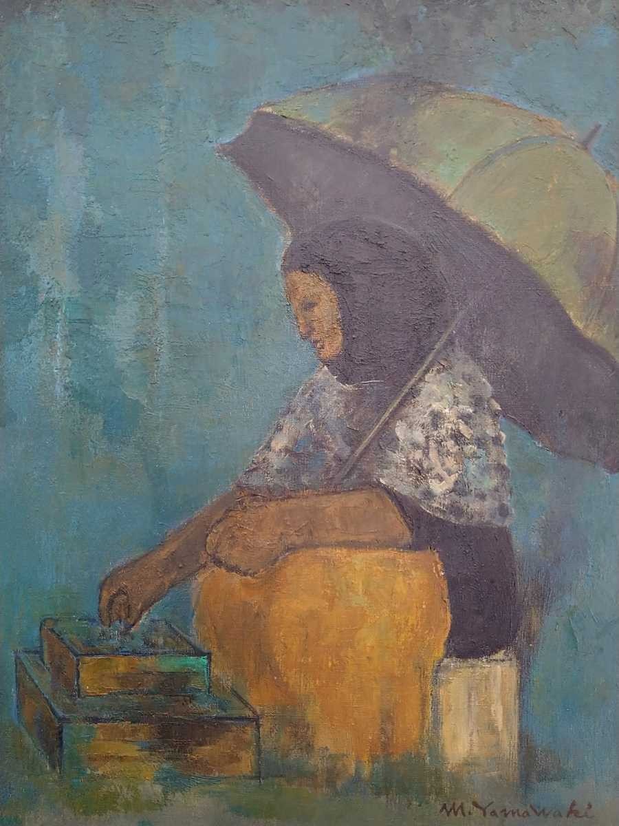 真作 山脇真人 油彩「貝を売る女」画寸 41cm×51cm 東京都出身 立軌会同人 路上行商人の寡黙に働く様子を描く 日動画廊取扱い作品 4780