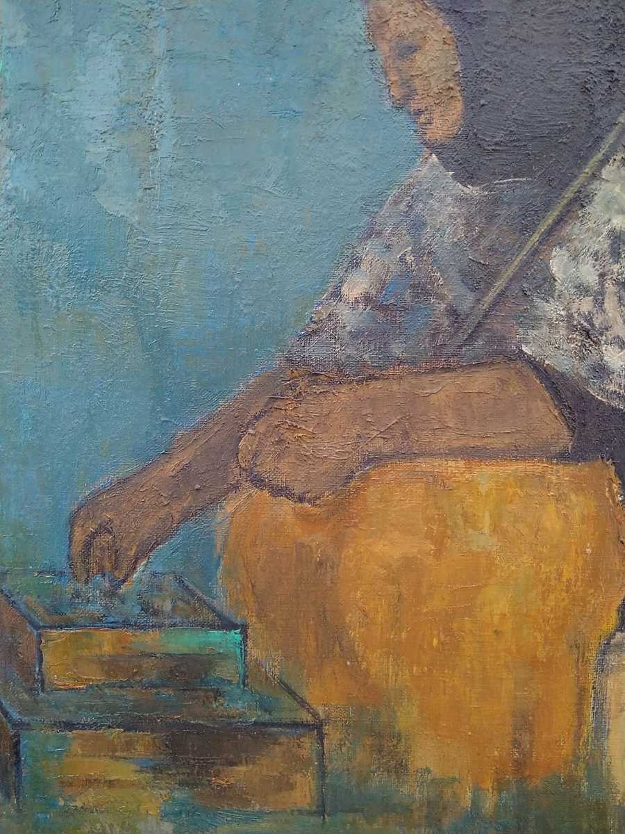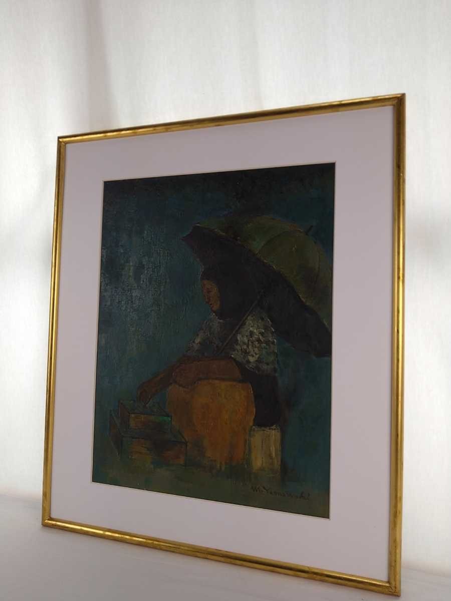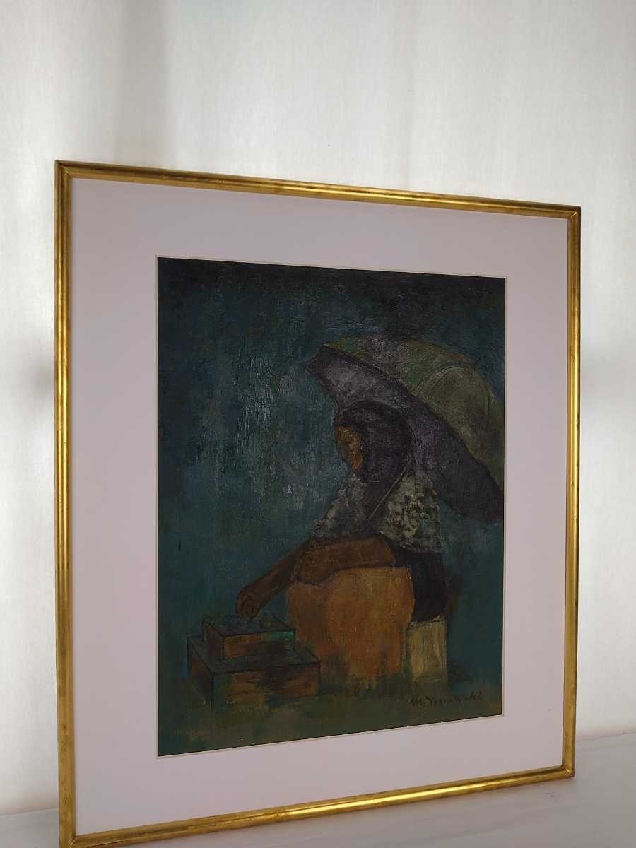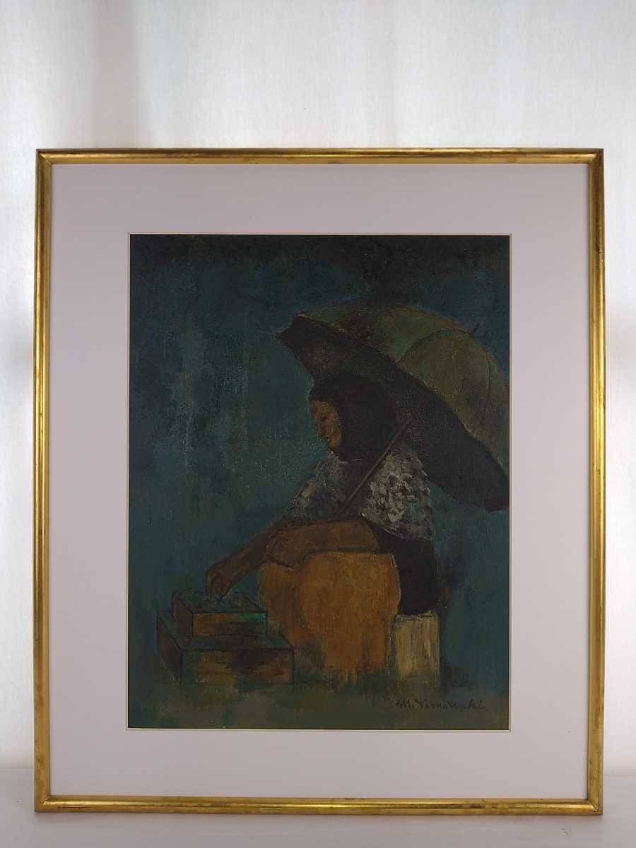 真作 山脇真人 油彩「貝を売る女」画寸 41cm×51cm 東京都出身 立軌会同人 路上行商人の寡黙に働く様子を描く 日動画廊取扱い作品 4780