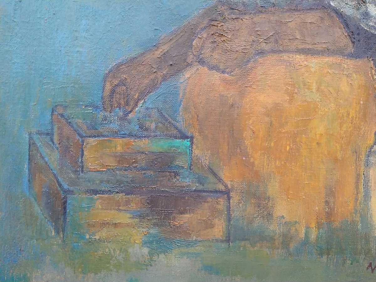 路上販売をしていた様でその様子を描いた作品と推察致します。