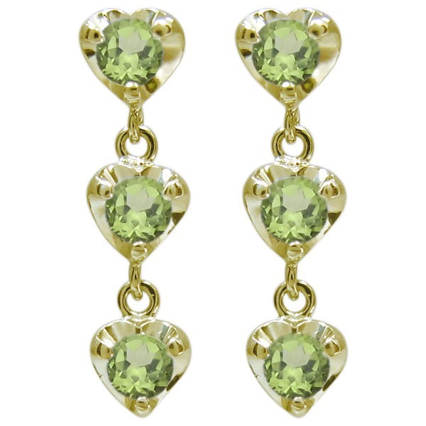 ペリドットピアス ハートピアス トリロジー ピアス 18金
