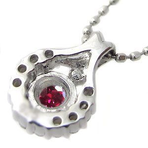 7月誕生石ルビーを一粒使用した10金製の馬蹄(ホースシュー)デザインネックレスペンダントです。