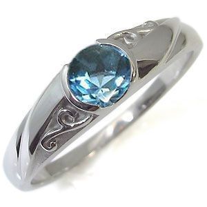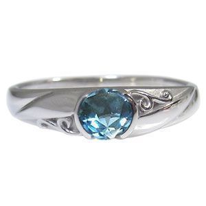 11月誕生石ブルートパーズを一粒使用した唐草(アラベスク)デザインの、プラチナ製リング(指輪)です。