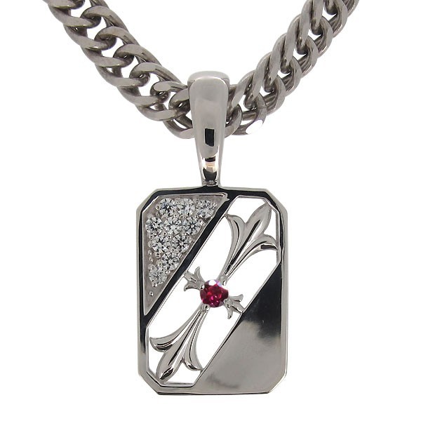 7月誕生石ルビーを使用したプラチナ製の、クロス(十字架)モチーフメンズネックレス(ペンダント)です。