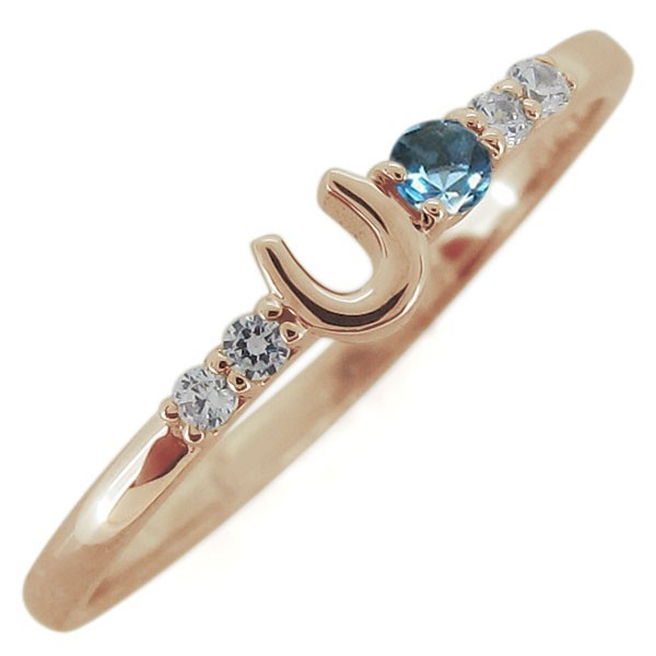 11月誕生石ブルートパーズを使用した10金製の、馬蹄(ホースシュー)モチーフリング(指輪)です。