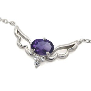 2月誕生石大粒アメジスト(オーバル)を一粒使用した10金製の、天使の羽根をモチーフにしたアンクレット(ブレスレット)です。