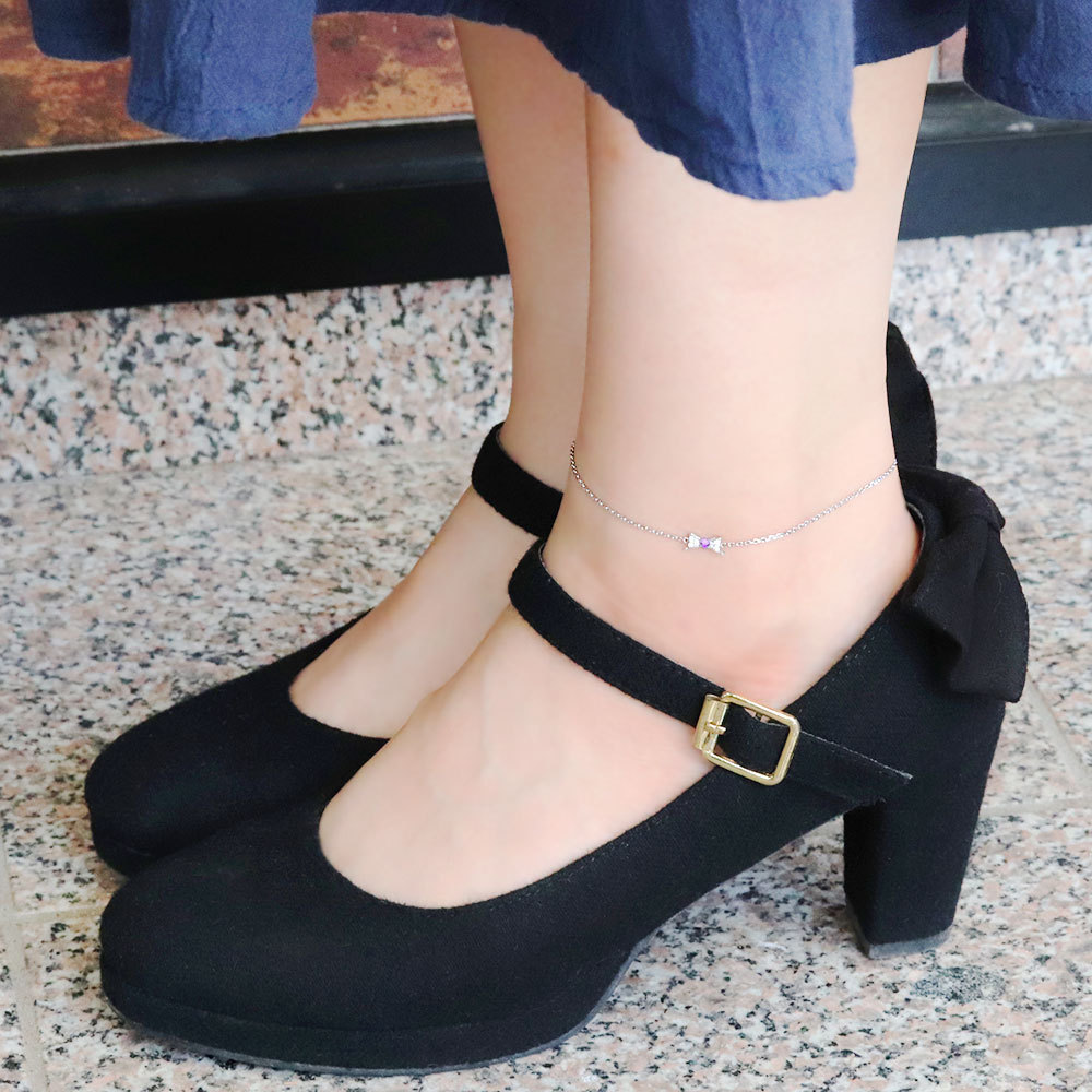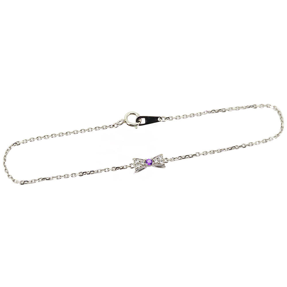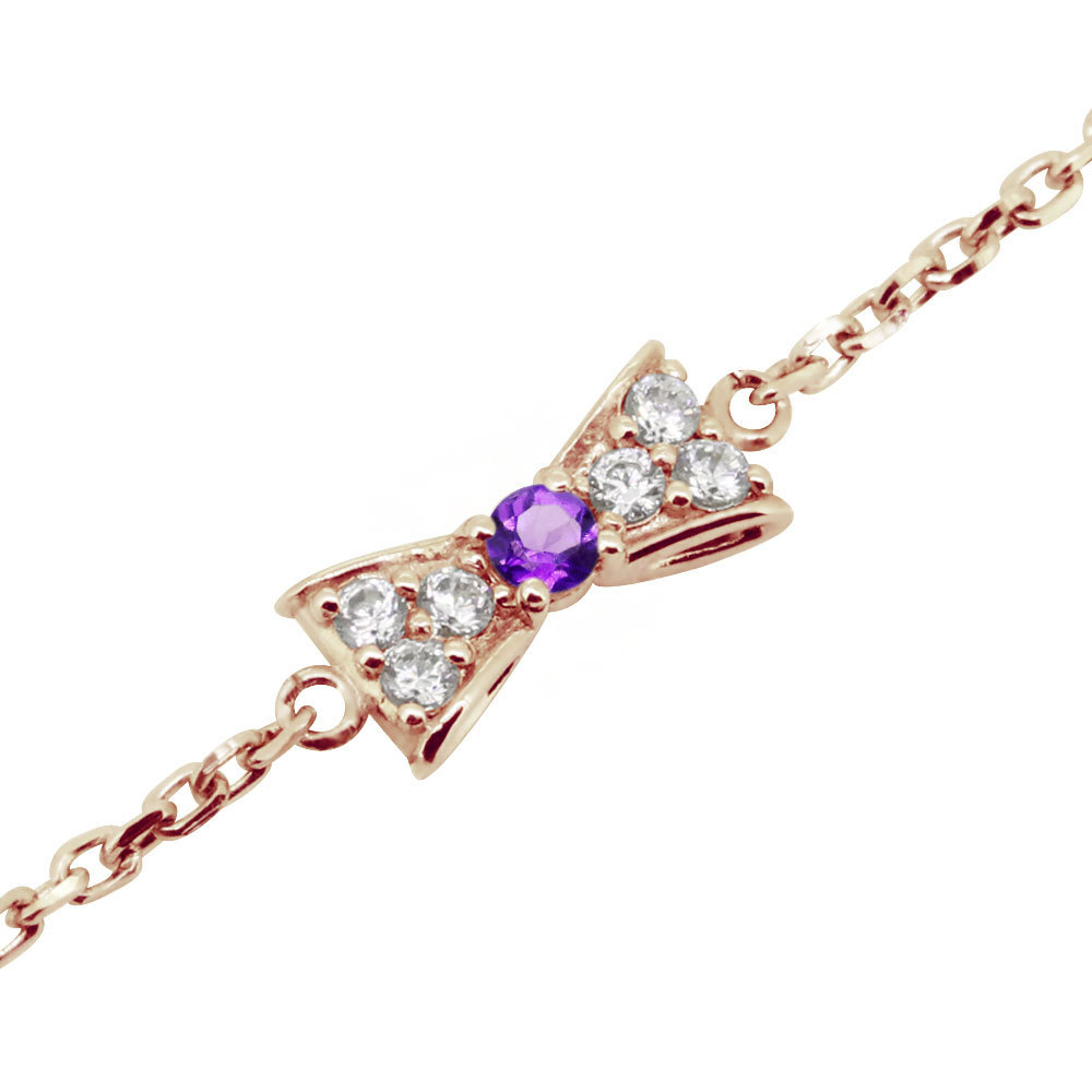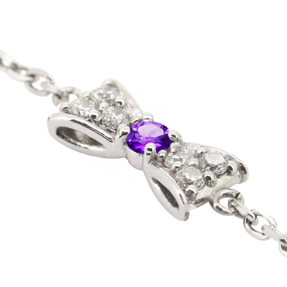 2月誕生石アメジストを使用した10金製の、リボンモチーフのアンクレットです。