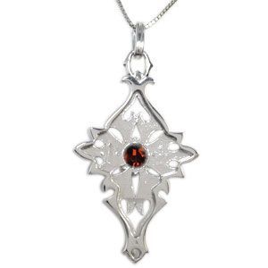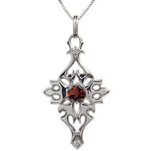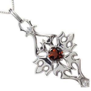 1月誕生石ガーネットを一粒使用したトライバルデザインの18金製メンズネックレスペンダントです。