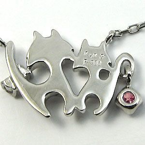10月誕生石ピンクトルマリンを一粒使用した18金製のネコ(猫)モチーフブレスレットです。