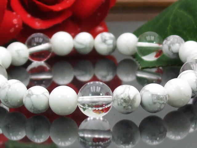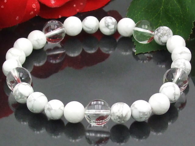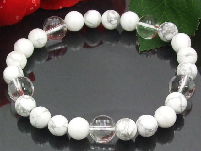 ロロロ 素材 ロロロ ホワイトターコイズ8ミリ 水晶10ミリ サイズは約21cm(内径約19cm)です♪