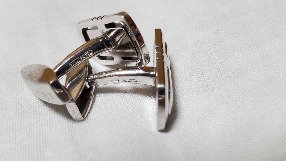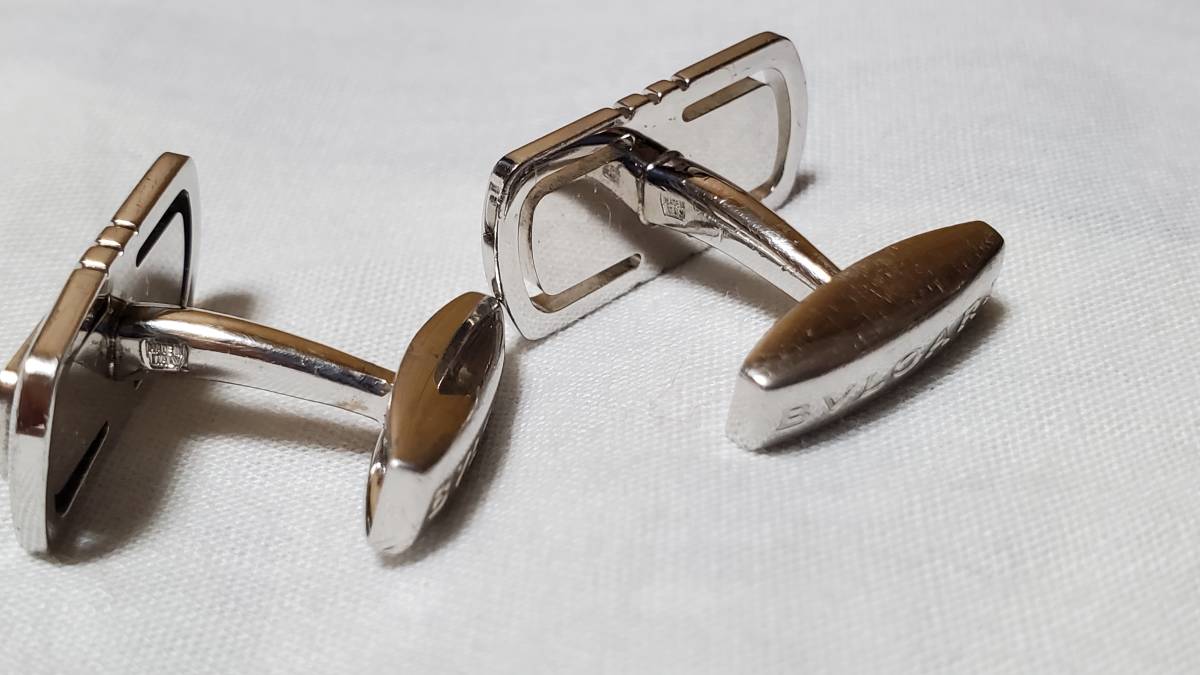 正規良 激レア ブルガリBVLGARI パレンテシ 2カラーカフス 黒×SV オープンワーク カフリンクス アイコンロゴ ラグジュアリー クロスボタン