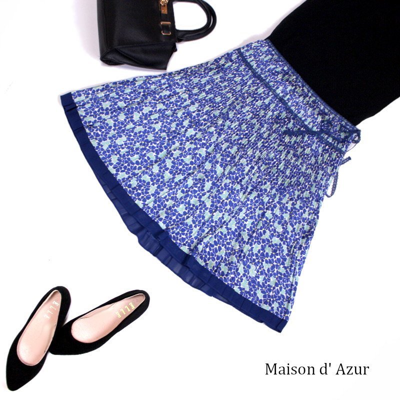 美品 Maison d' Azur メゾンダジュール オンワード樫山 ■ 春 夏 ほんのり艶 イラスト フラワー柄 シワギャザー ふんわり フレアスカート S