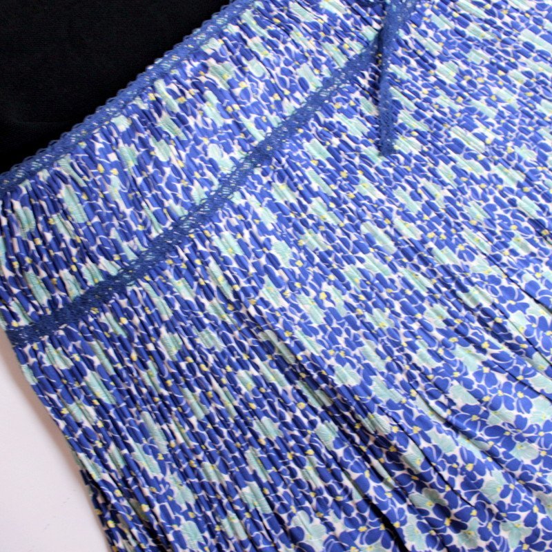 フラワープリントほんのり艶生地、ファスナーは左側、レースの飾り、綺麗めデザインです。