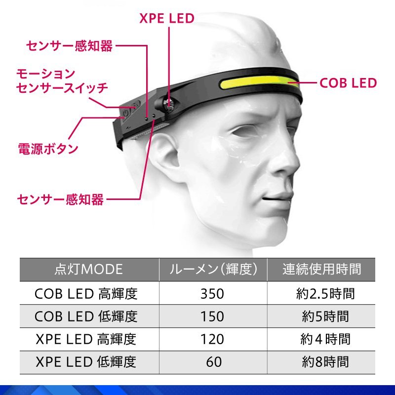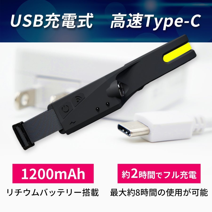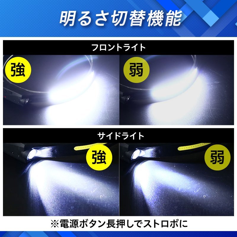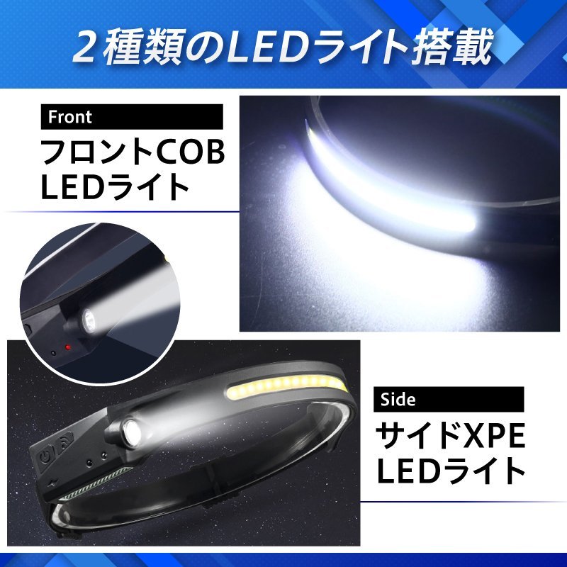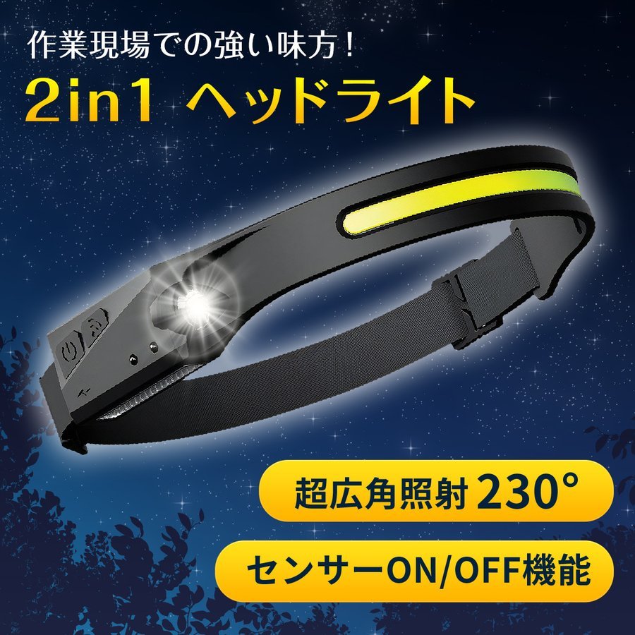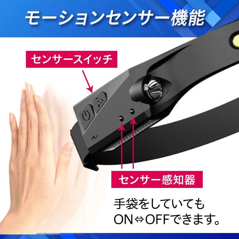 おすすめ!/新品/ヘッドライト 充電式 COB LEDライト 超広角 作業灯 ヘッドランプ モーションセンサー/強弱/⑥