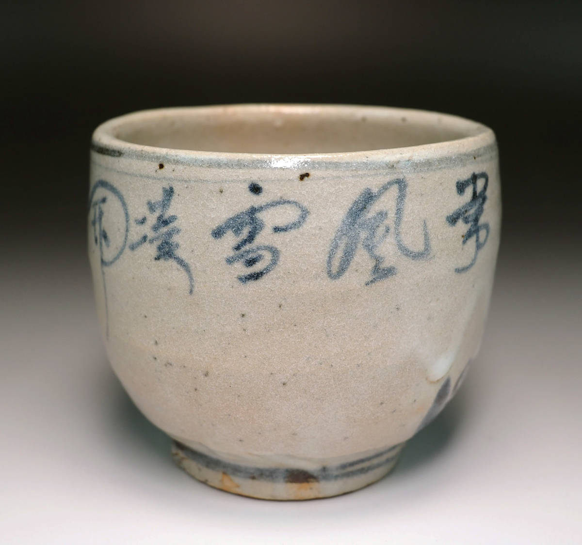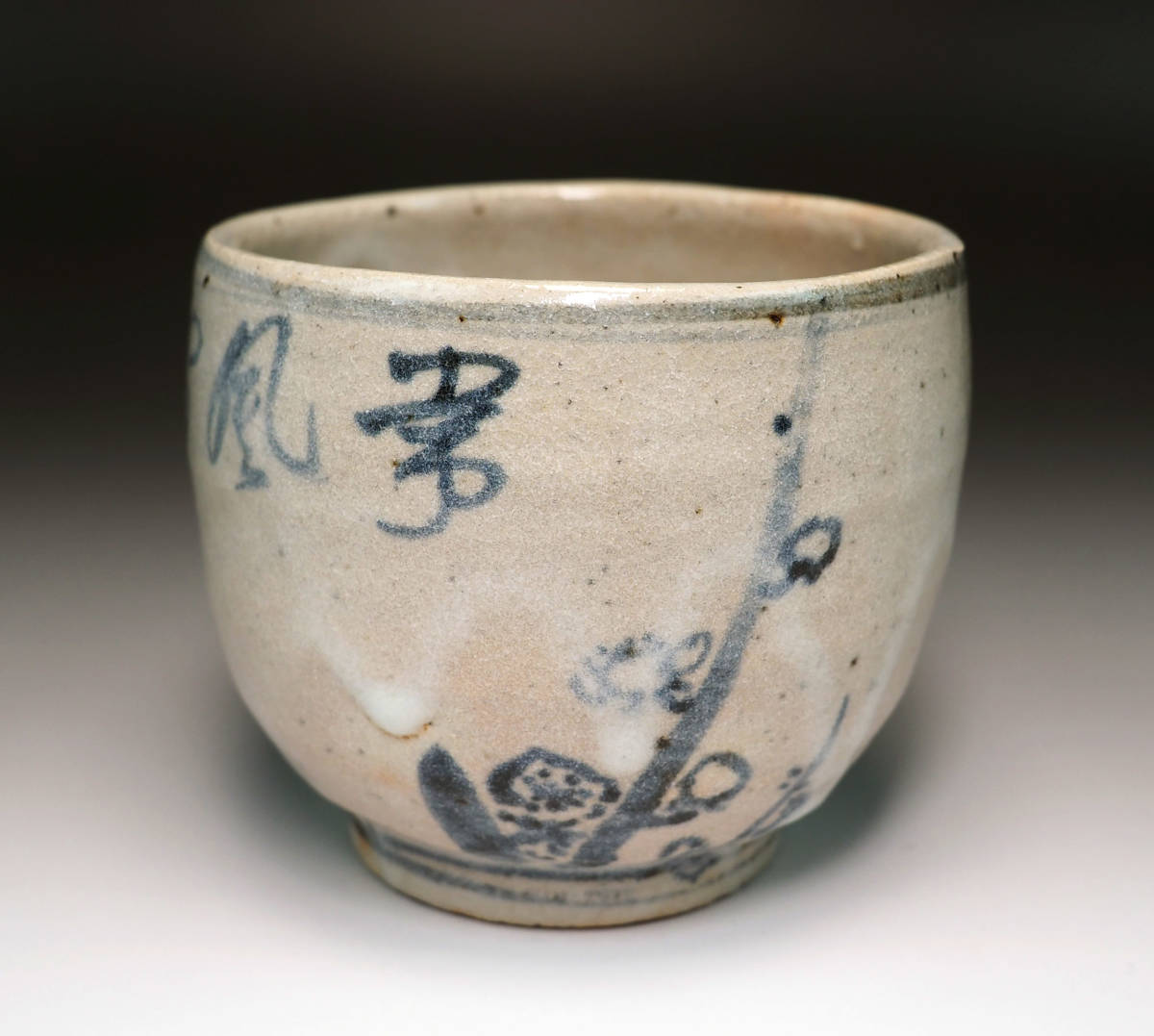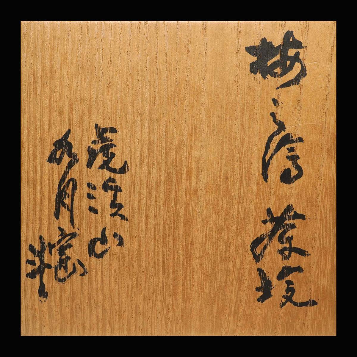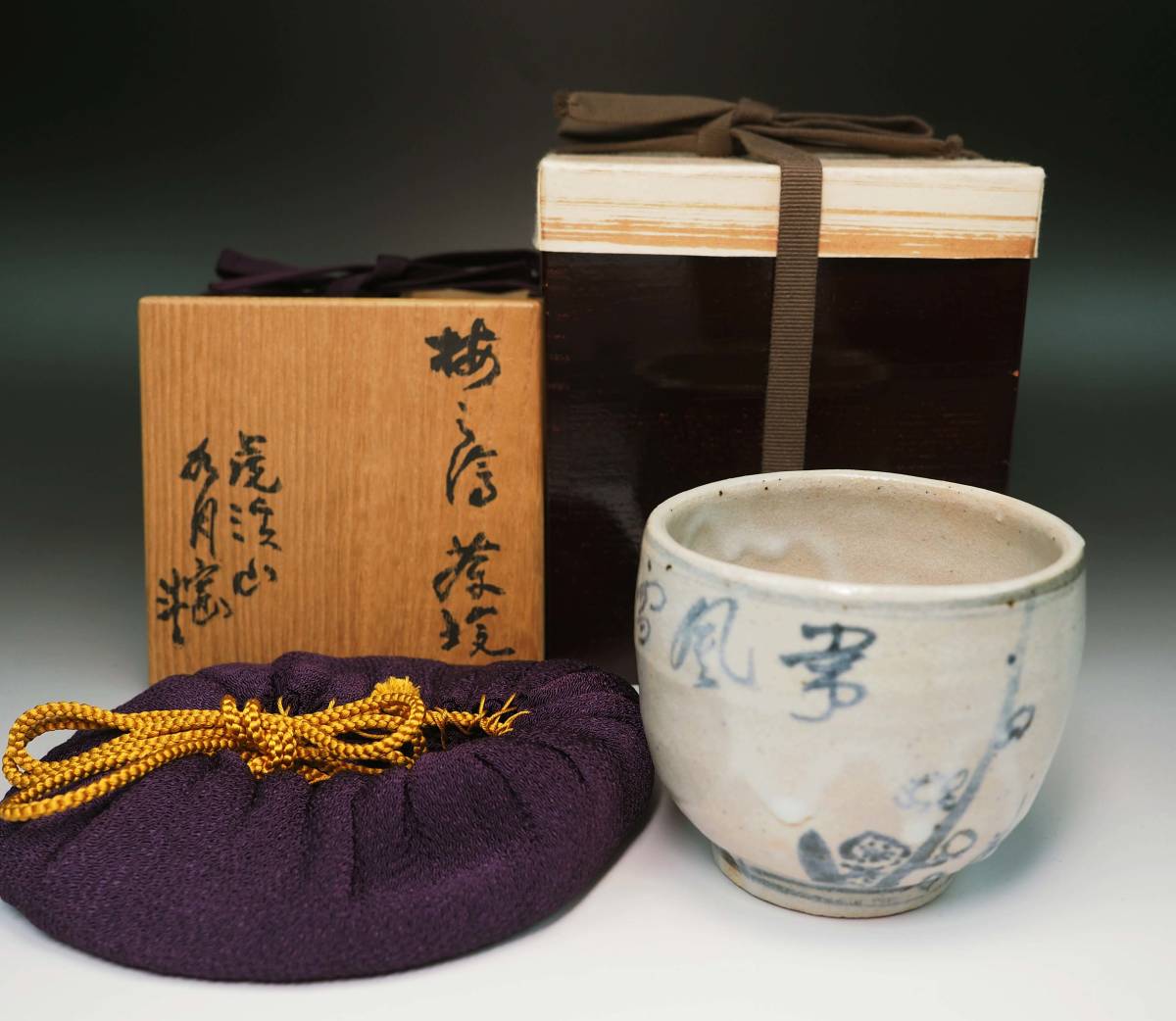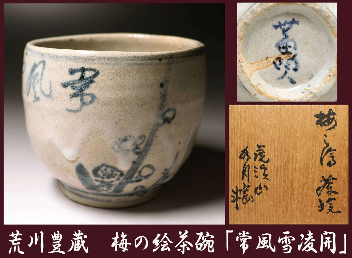 ![]() 人間国宝 荒川豊蔵本人作の梅と書 「常風雪凌開」が描かれた「梅の絵茶碗」です。 「無田陶人」書き銘あり。 共に出品中の書と同一の文言が描かれております。 サイズ:約 径11.0cm×高9.4cm 共箱・仕覆・二重箱付き 作品状態:無傷で美品です。(目視確認です。) 詳細は写真でご判断下さい。 こちらの作品は真作保証の安心頂ける作品であることをお約束いたします。 不明な点は、入札前に質問等でご確認下さい。 荒川 豊藏(あらかわ とよぞう、1894年3月21日 - 1985年8月11日) 昭和を代表する美濃焼の陶芸家。岐阜県多治見市出身。桃山時代の志野に陶芸の原点を求め、古志野の筍絵陶片を発見した牟田洞古窯跡のある大萱に桃山時代の古窯を模した半地上式穴窯を築き、古志野の再現を目指して作陶を重ねた。終には「荒川志野」と呼ばれる独自の境地を確立した。北大路魯山人の助手を務めてのち、志野・瀬戸黒など桃山時代の焼物の再現に力を尽くす。また長男武夫と共に水月窯を築窯した。人間国宝。文化勲章受章。昭和60年(1985)歿、91才。 斗出庵、無田陶人と号す。 | |||