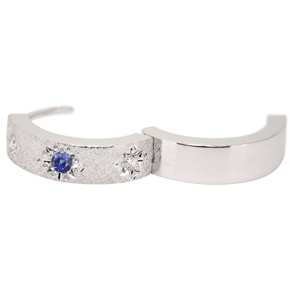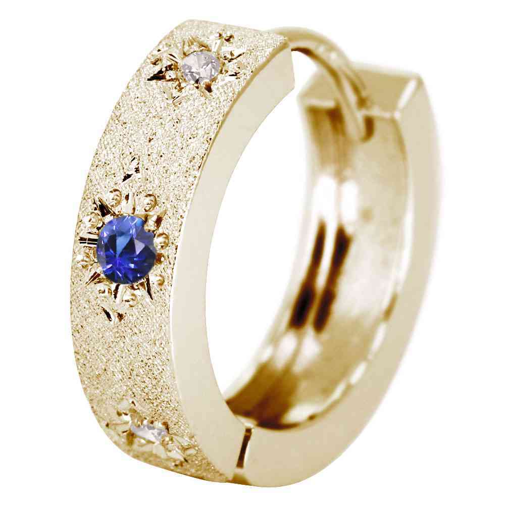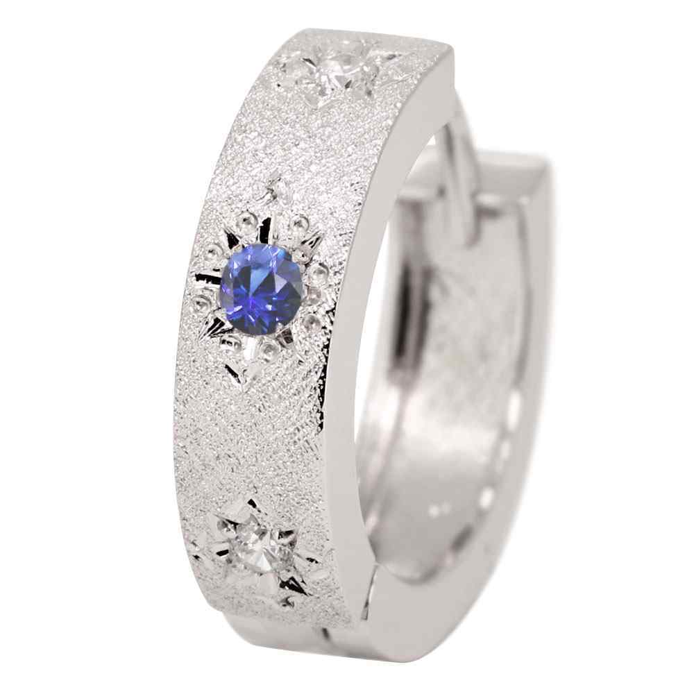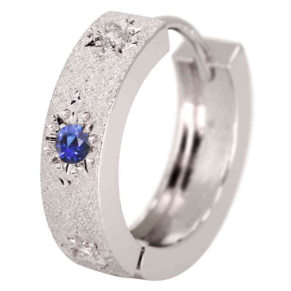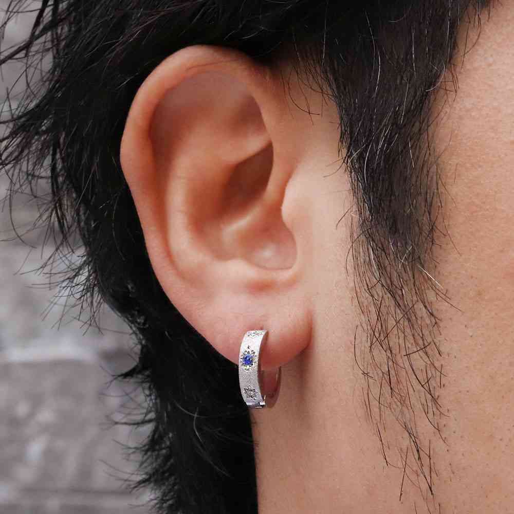 9月誕生石サファイアを使用したシルバー製の、メンズフープピアスです。