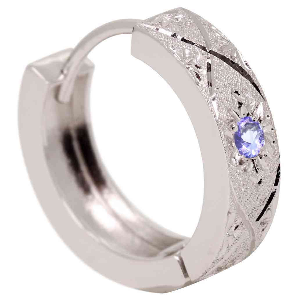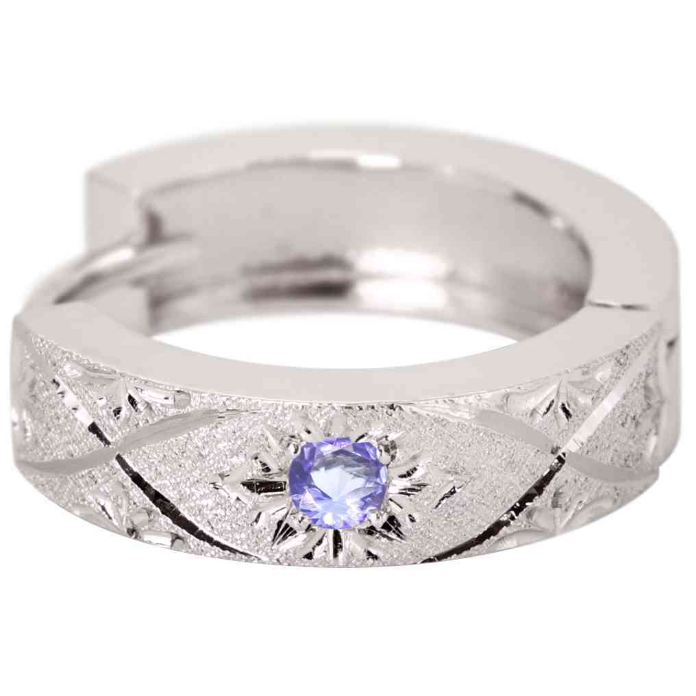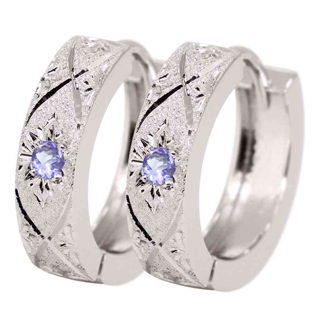 12月誕生石タンザナイトを使用したシルバー製の、レディースフープピアスです。