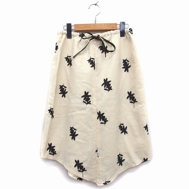 エムケー ミッシェルクラン MK MICHEL KLEIN イレギュラーヘム スカート ロング 総柄 ウエストリボン 38 クリーム /HT21 レディース