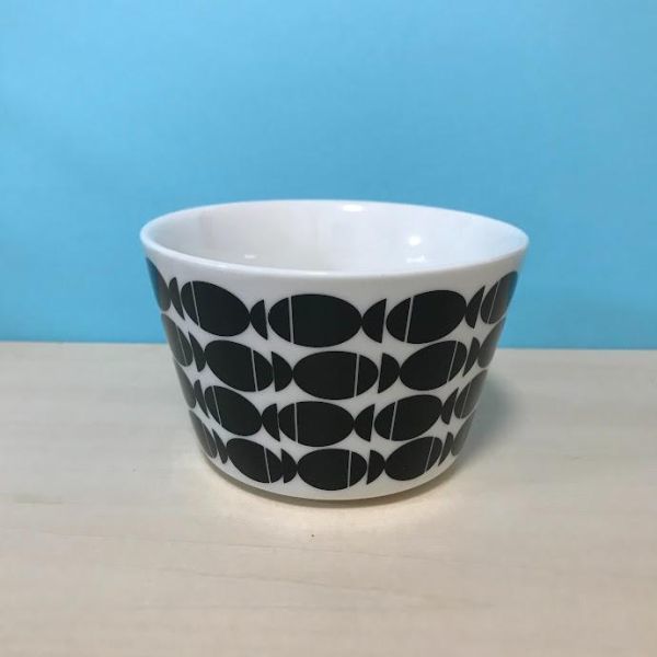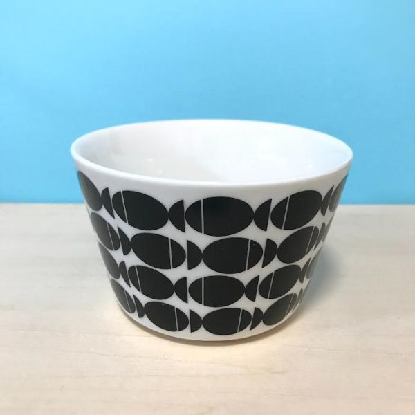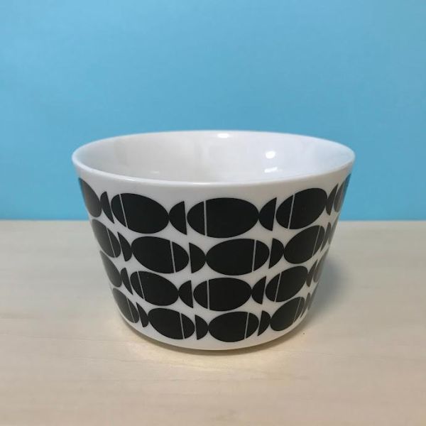 フィンランドのメーカーマルティネックスより、お魚柄のお皿です。 【容量】3.5dL(350mL) 【サイズ】高さ約7cm、直径約11cm 【素材】磁器 洗浄機可。電子レンジ可。