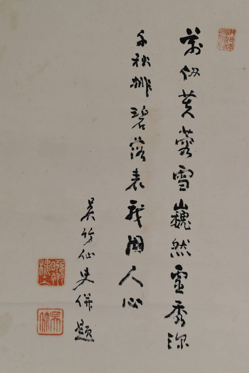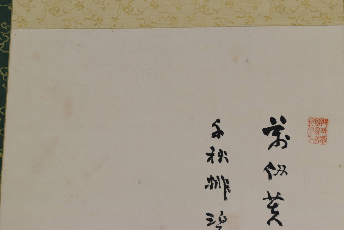 【作品状態】 本紙は紙本肉筆です。  本紙は薄汚れ、多数の汚れシミ、多数の折れ、巻シワなどあります。状態は悪いです。表装は絹表装で良好です。