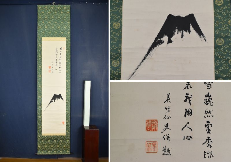 真作/呉竹仙史/富士画賛//掛軸☆宝船☆AA-729