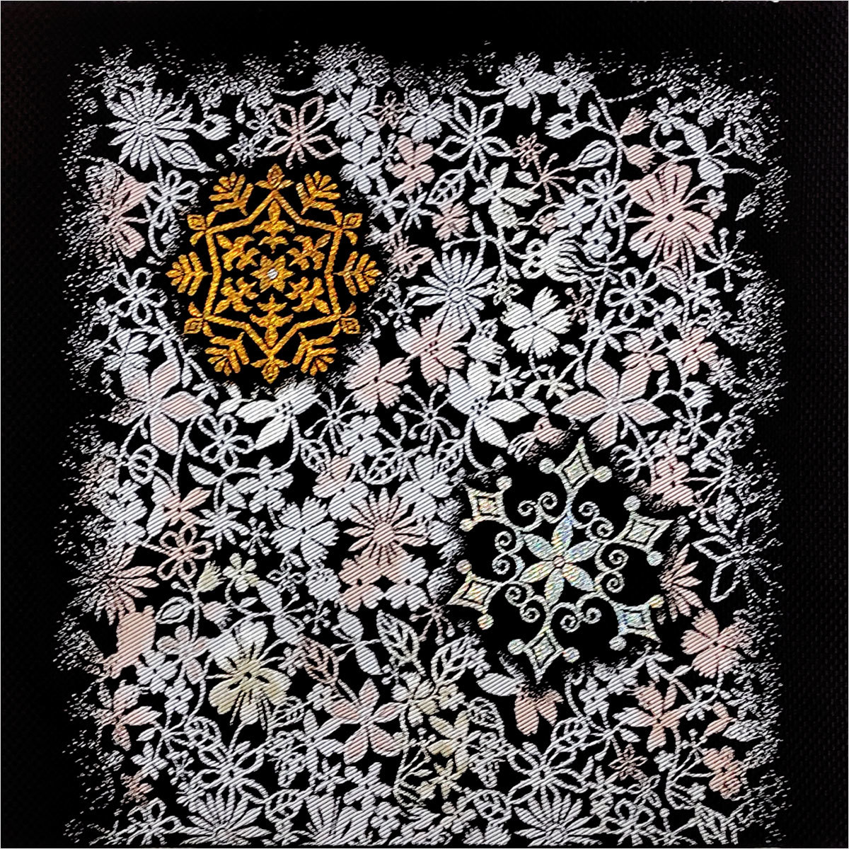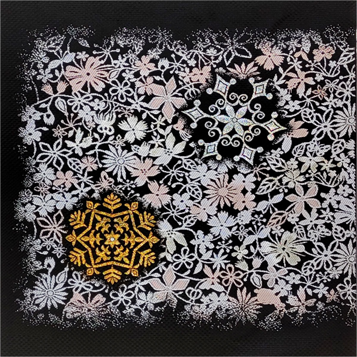 ![]() 前柄 (半分に折った片側が前柄です) | ![]() 前柄アップ (結ぶ向きで見える柄が変わります) |