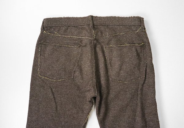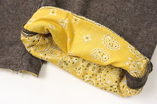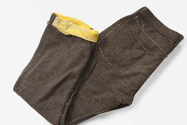 裏地にペイズリーをあしらったニット地パンツ。