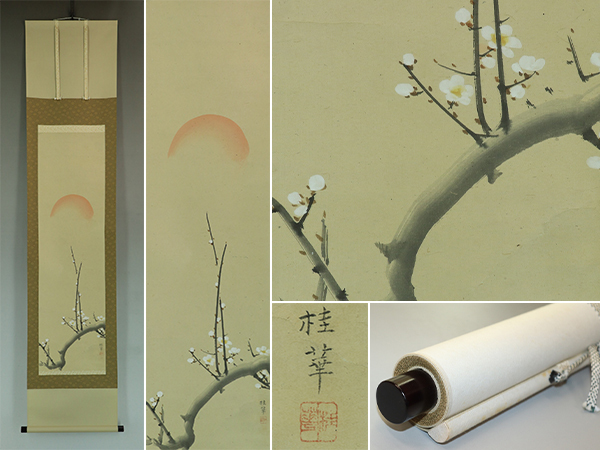 | №2210165【真作】金島桂華【旭日梅】◆紙本◆合箱◆掛軸 | |