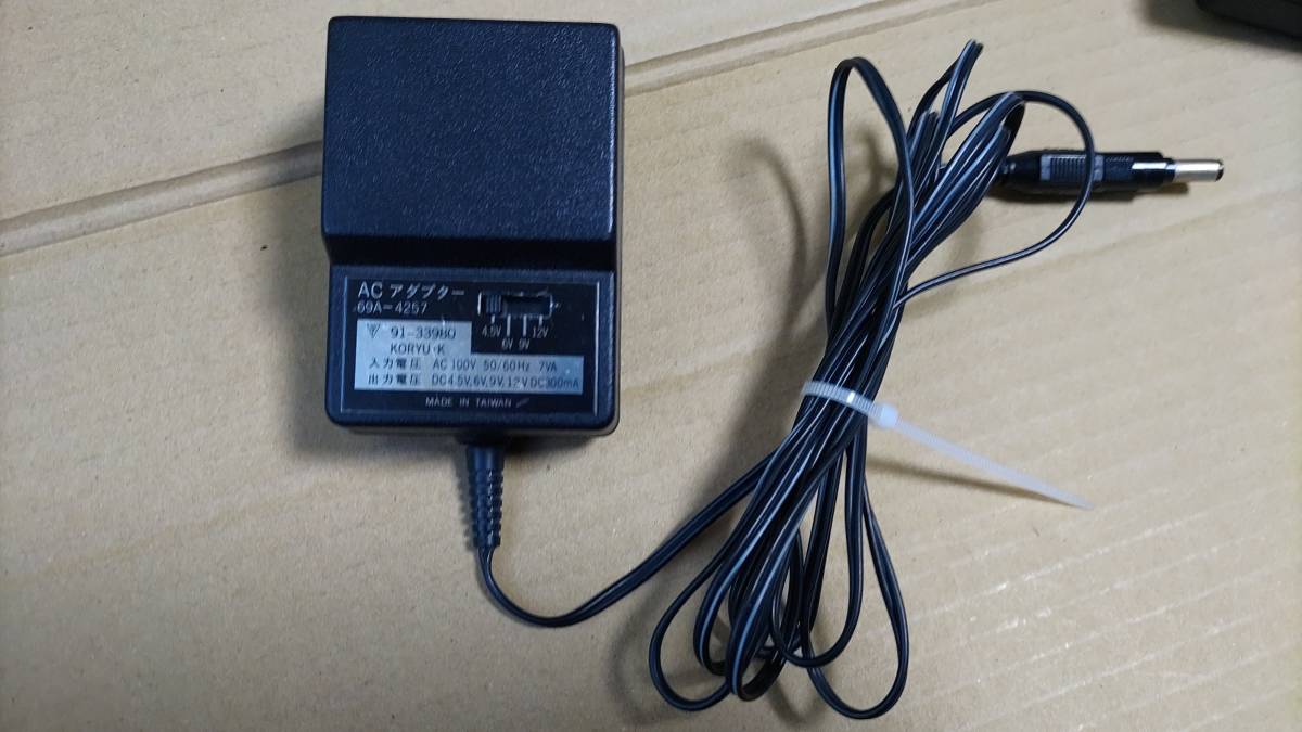 出力電圧を変更できるアダプタです。ただ、調整装置の調子が悪いのか、テスタで測ったところ、スイッチで電圧が変化する時もあれば、直流15V程度が出っぱなしの時があります。また、センターの±を変更できるアダプタがついていますが、片方のアダプタが欠品しています。変圧の調子が悪いようなのでジャンクとしてご購入ください。