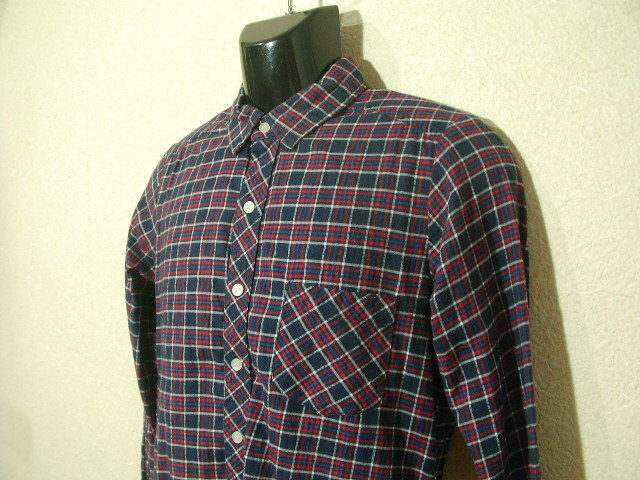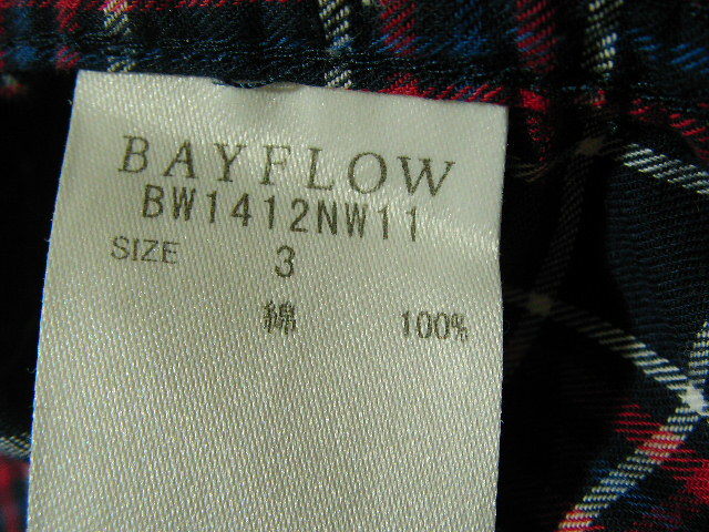 ssy5320 BAYFLOW 長袖 ネルシャツ コットンシャツ ネイビー×レッド ■ チェック柄 ■ カジュアル サイズ3/L