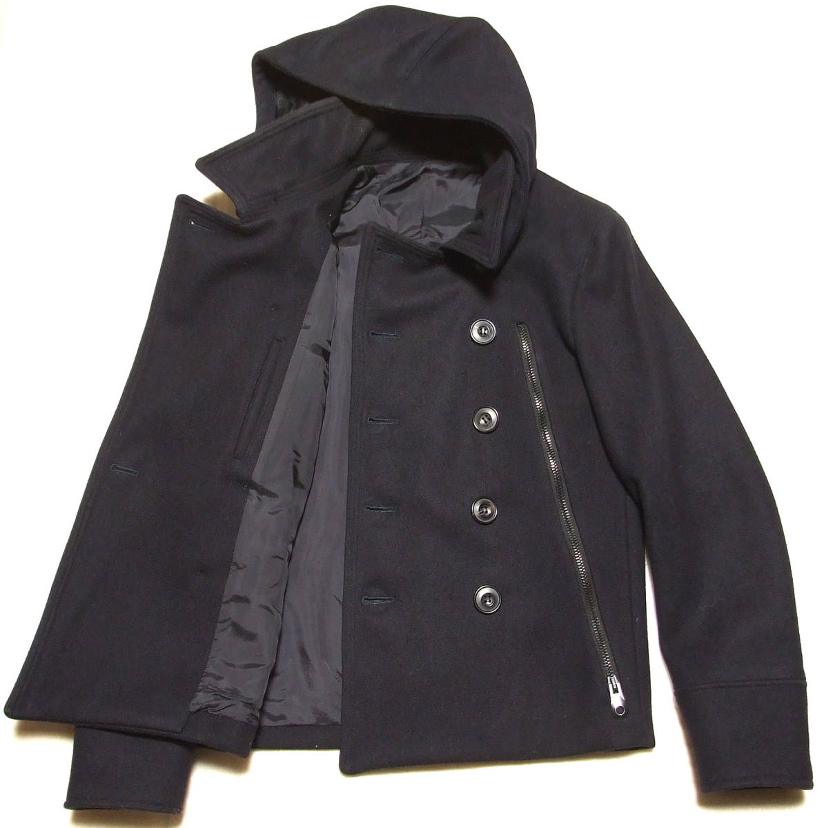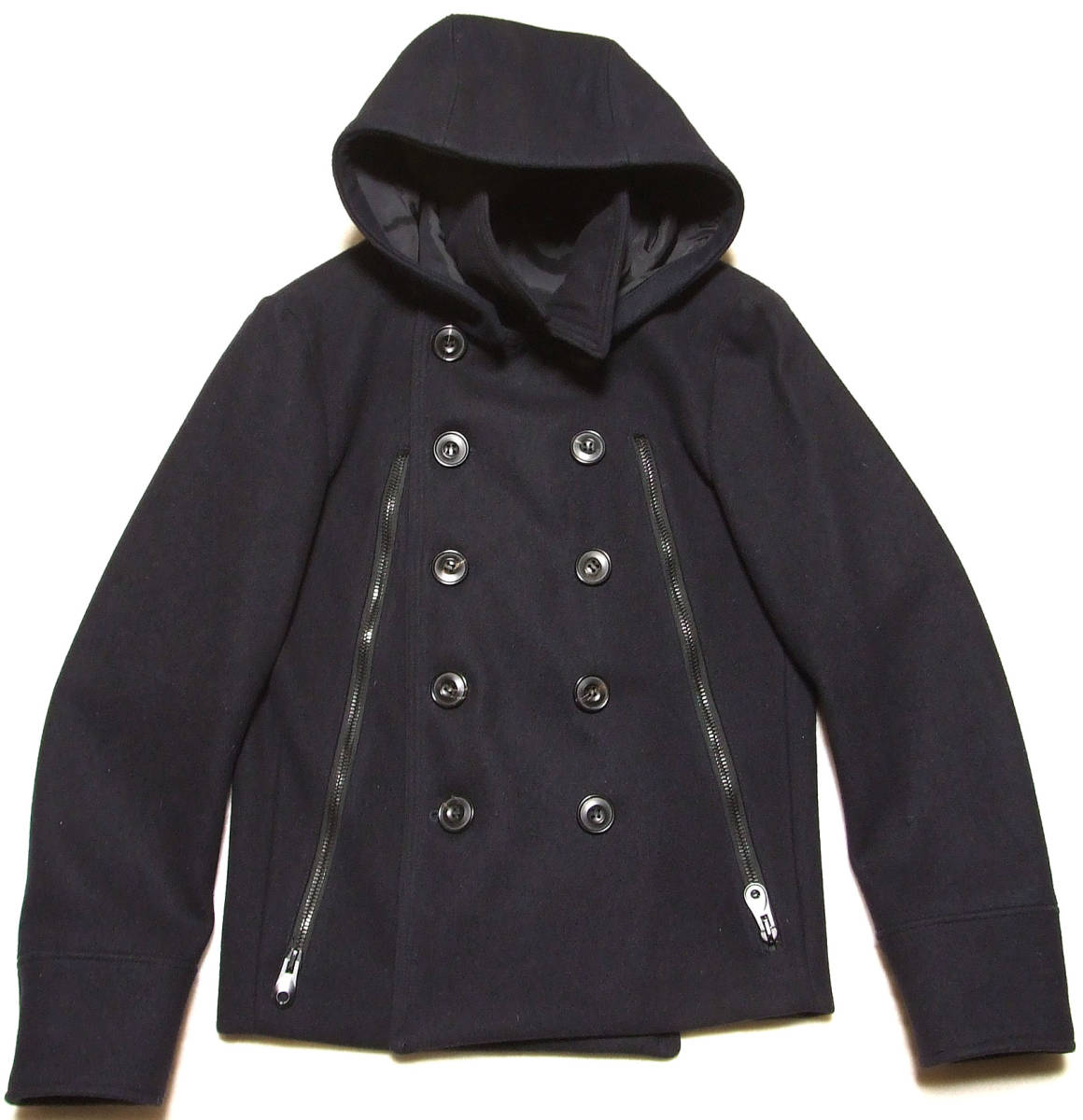 ■junhashimoto LONG ZIP P-COATカシミア混【2】フード付・新同極美品7.7万円