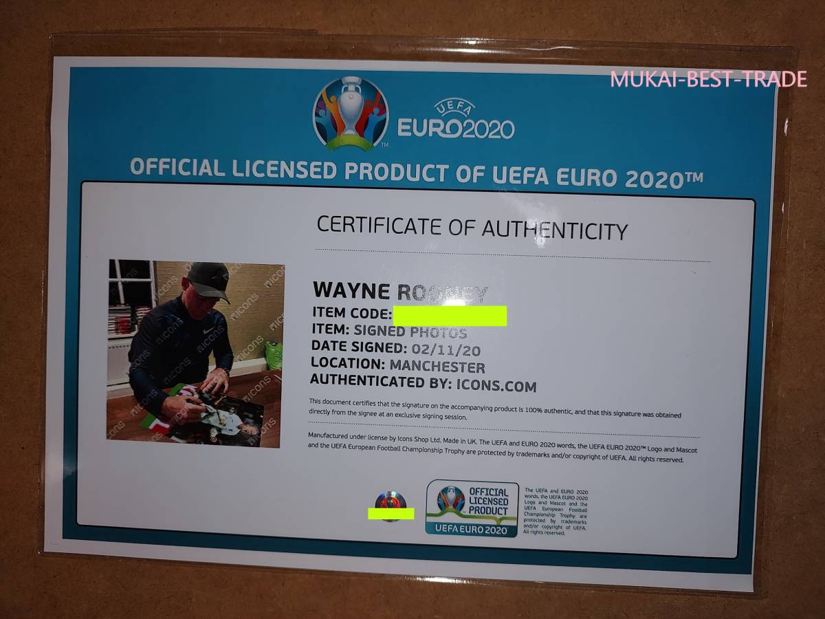 Wayne Rooney(ウェイン・ルーニー) サイン EURO2020オフィシャル photo【証明書あり】 イングランド代表 マンチェスターユナイテッド
