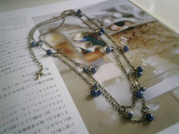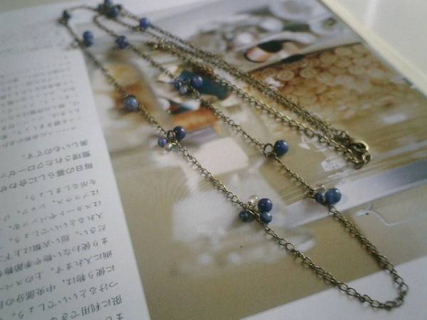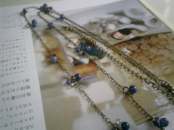 素敵・マニア・・シリーズです♪藍色の薔薇・・深い藍色のネックレスです♪華奢なチェーンに4ミリ、6ミリのデニムラピスや4ミリのスモーキークォーツの丸玉を散らして可憐な表情です♪長さは全長110センチ位で調節自由です♪画像のように2連にされても素敵です♪お揃いのネックレスやブレスレットやピアスも出品しています♪シンプルで飽きのこないいつまでも着けられるデザインを考えて作りました♪ハンドメイドをご理解頂いてノークレーム、ノーリターンでお願いします