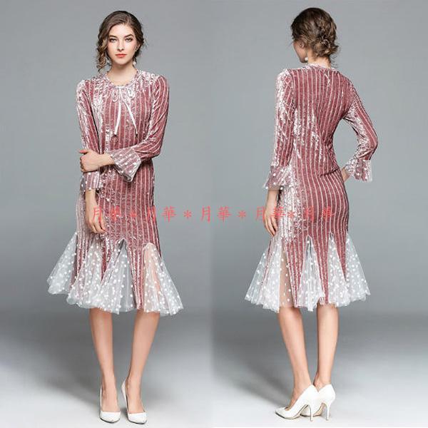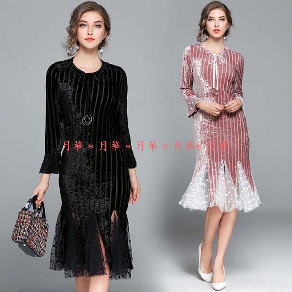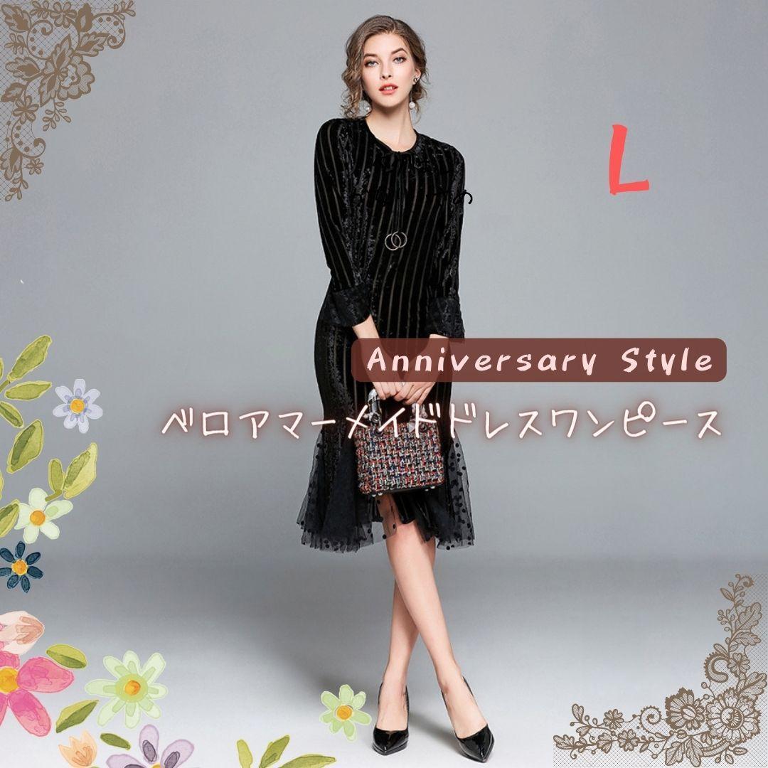 ベロア パーティードレス 黒 L 即納 マーメイド ワンピース ベルベット 袖あり 長袖 結婚式 二次会 レディース