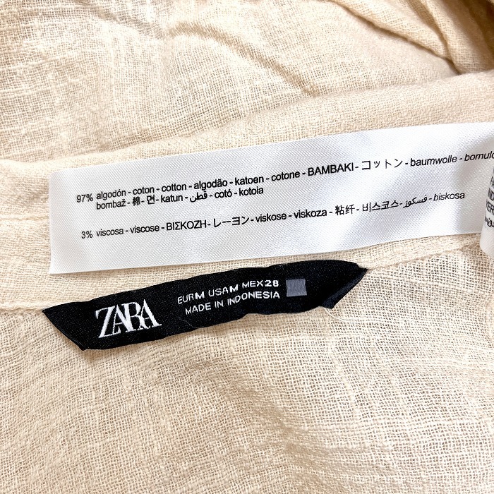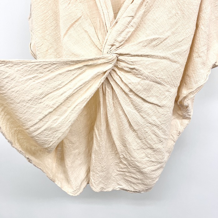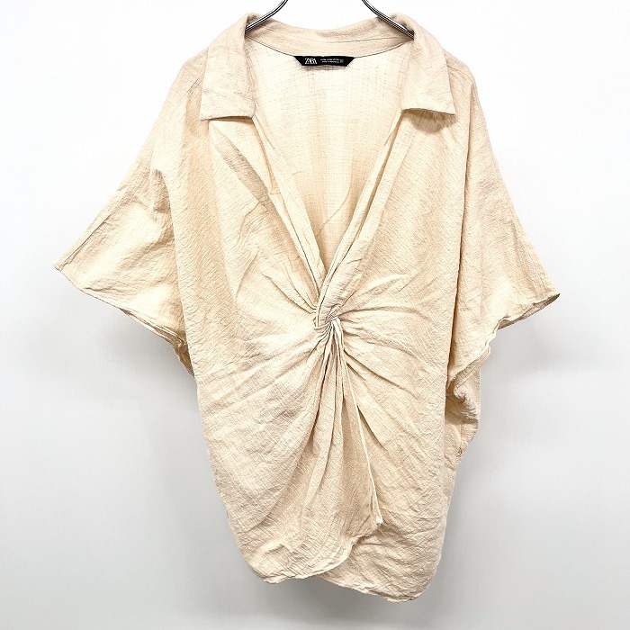 | 商品タイトル | ZARA - M レディース フロントツイスト プルオーバーシャツ フロントスリット キモノスリーブ 5分袖 綿×レーヨン ペールオレンジ ベージュ |
