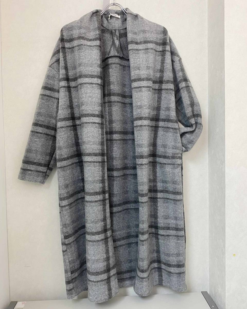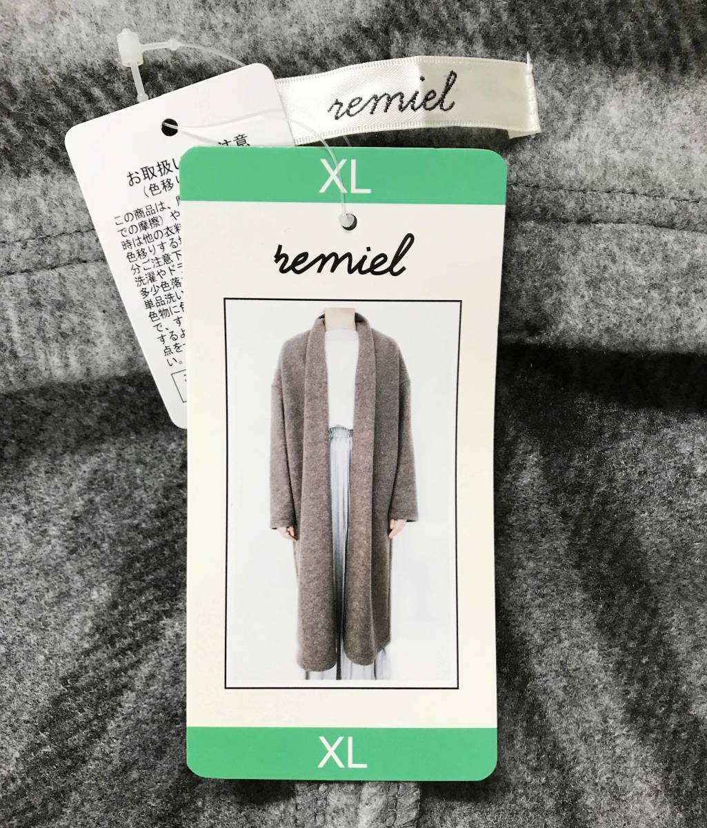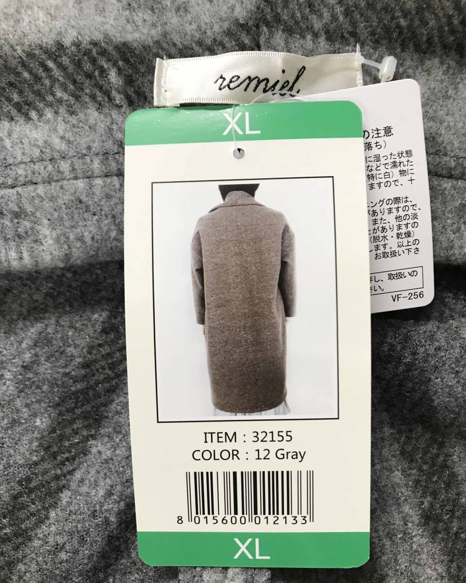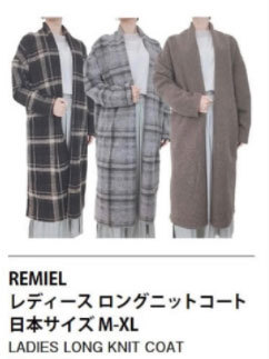 新品 XL ★ コストコ REMIEL 薄手 ロング ニット コート グレー チェック