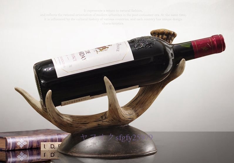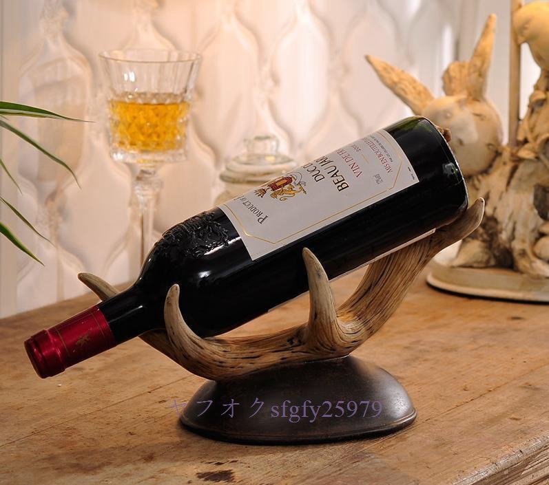 O466☆新品ワインボトルホルダー 鹿の角 ヨーロピアン風 アンティーク調 樹脂製