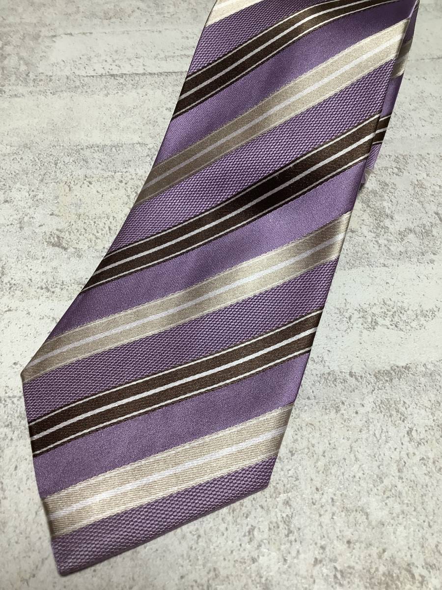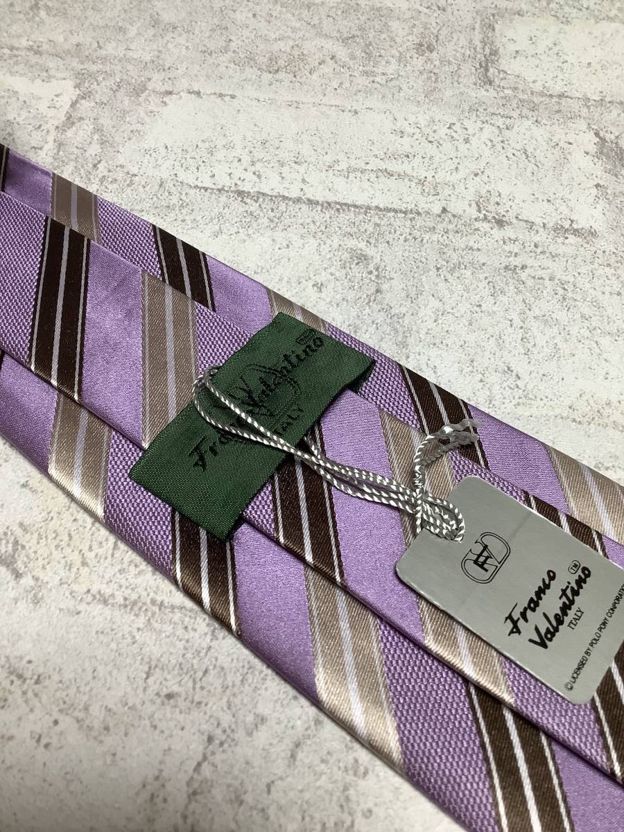 新品フランコヴァレンチノ シルク100%ネクタイ お洒落なパープルストライプ お買い得サービス