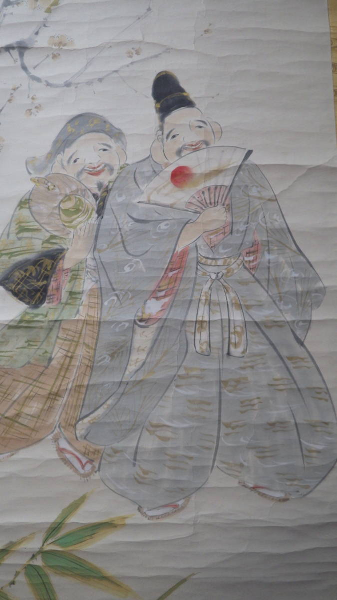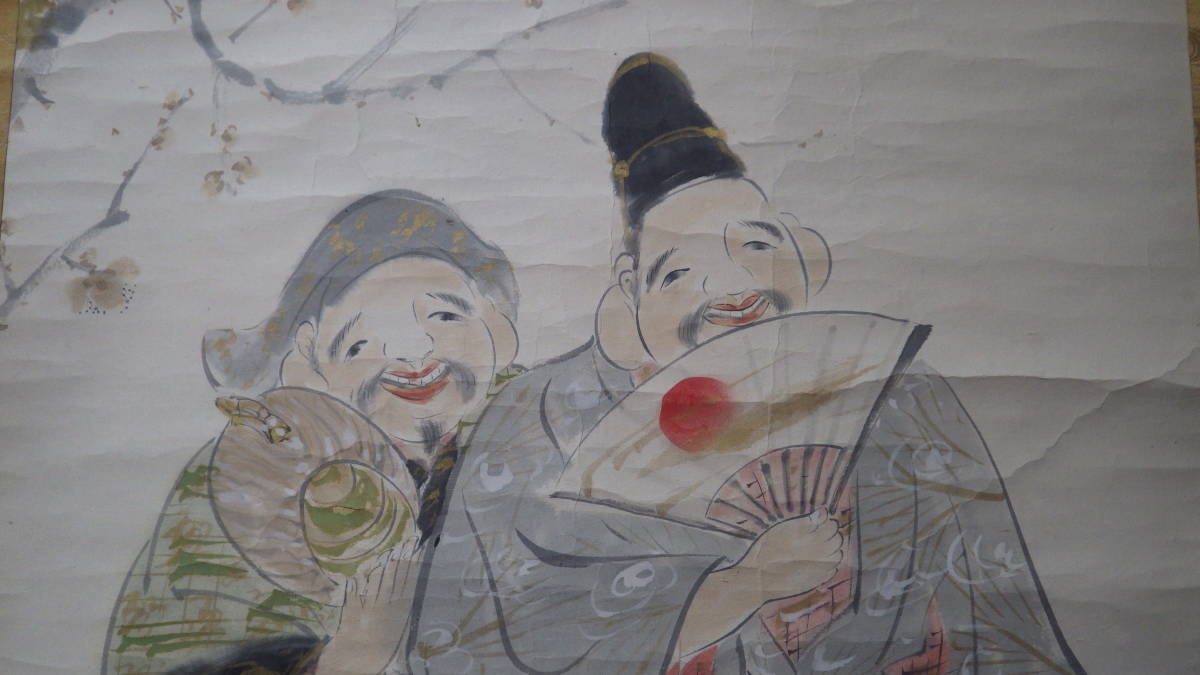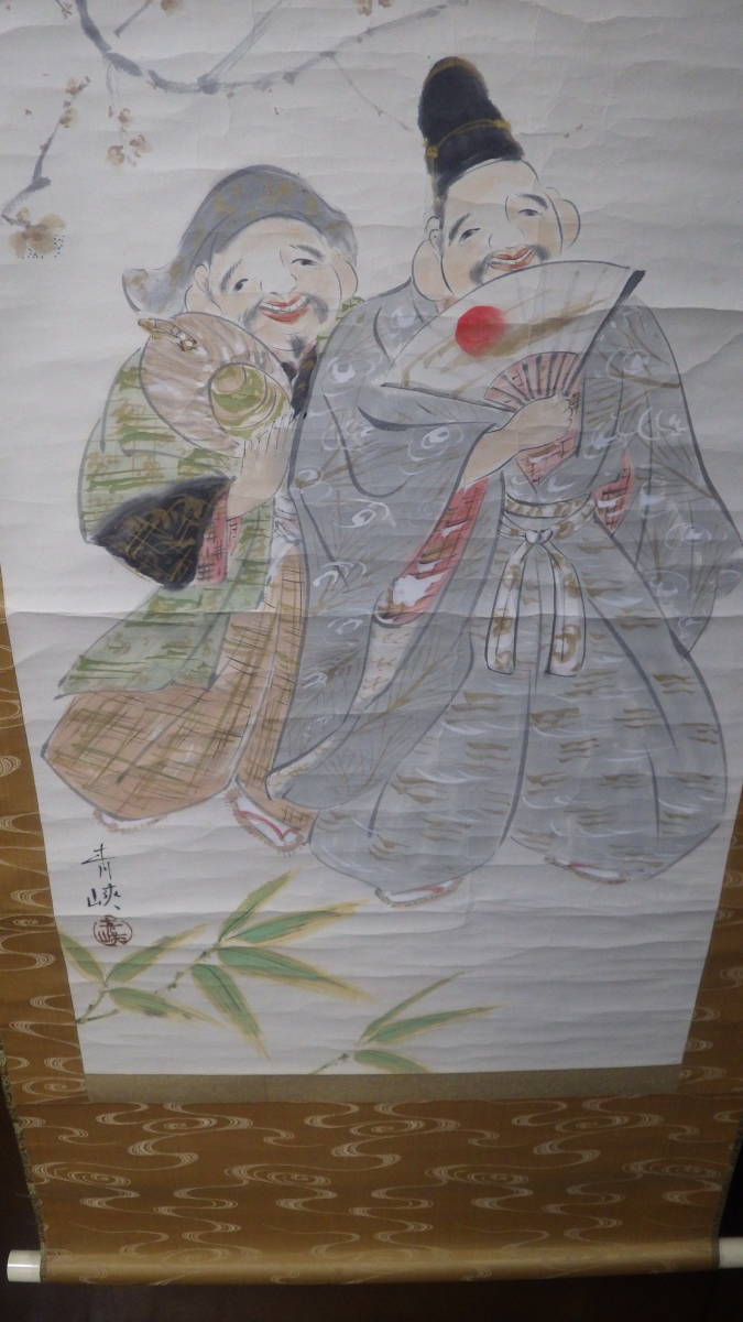 | 商品説明 | 招福を祈願するような笑顔いっぱいの恵比寿様・大黒様に松竹梅が描かれた日本画家:水口青峡の肉筆の御軸でございます。 御軸の大きさ:約57.5×約198.8センチ