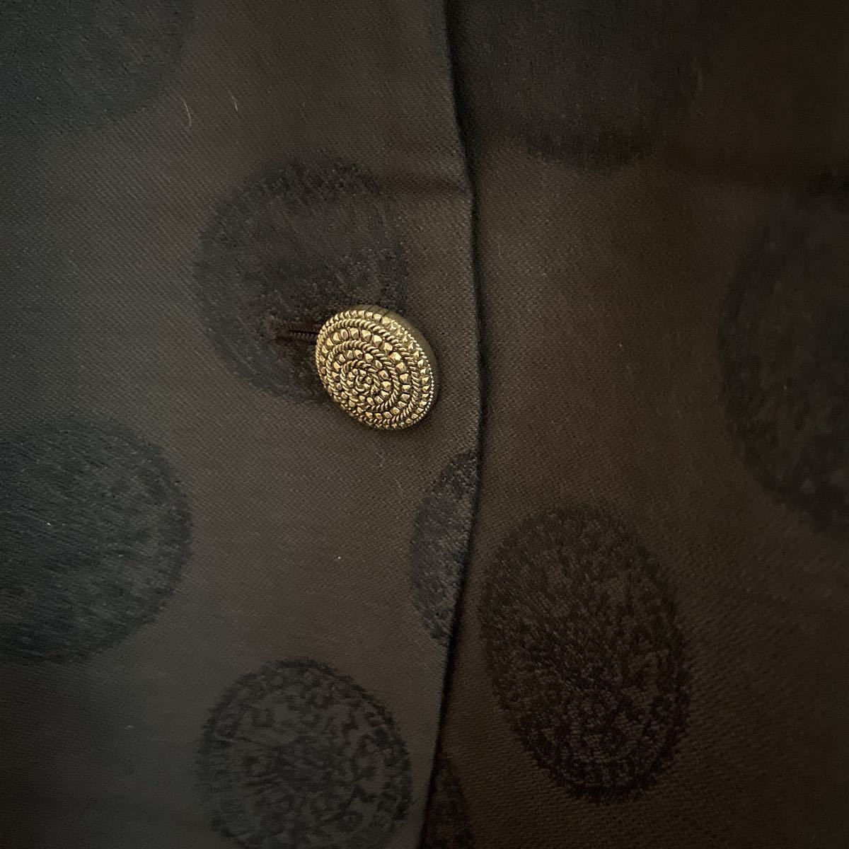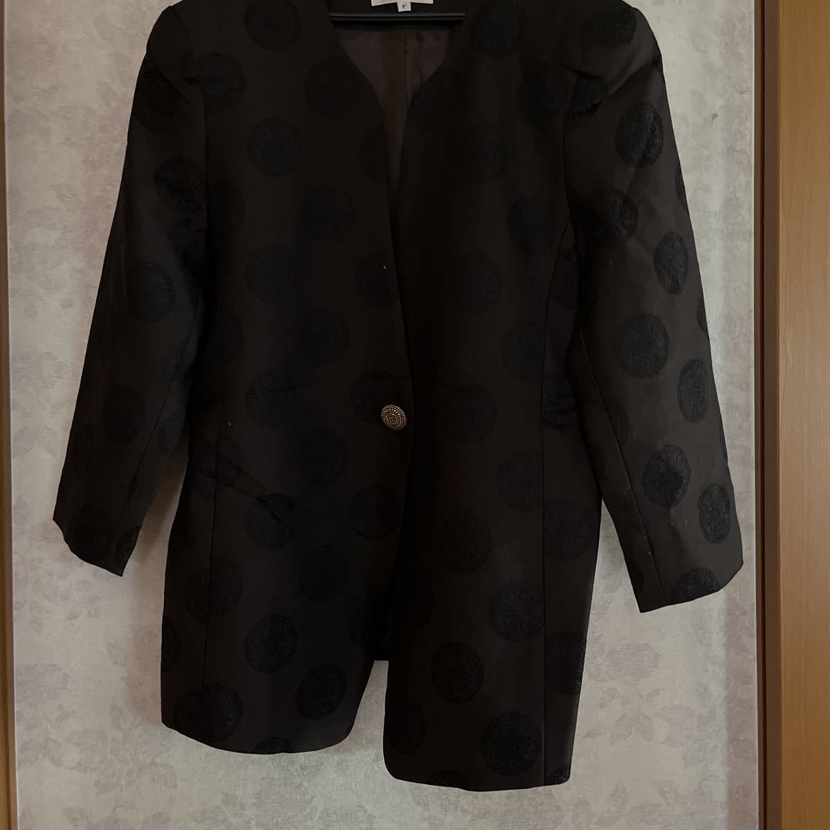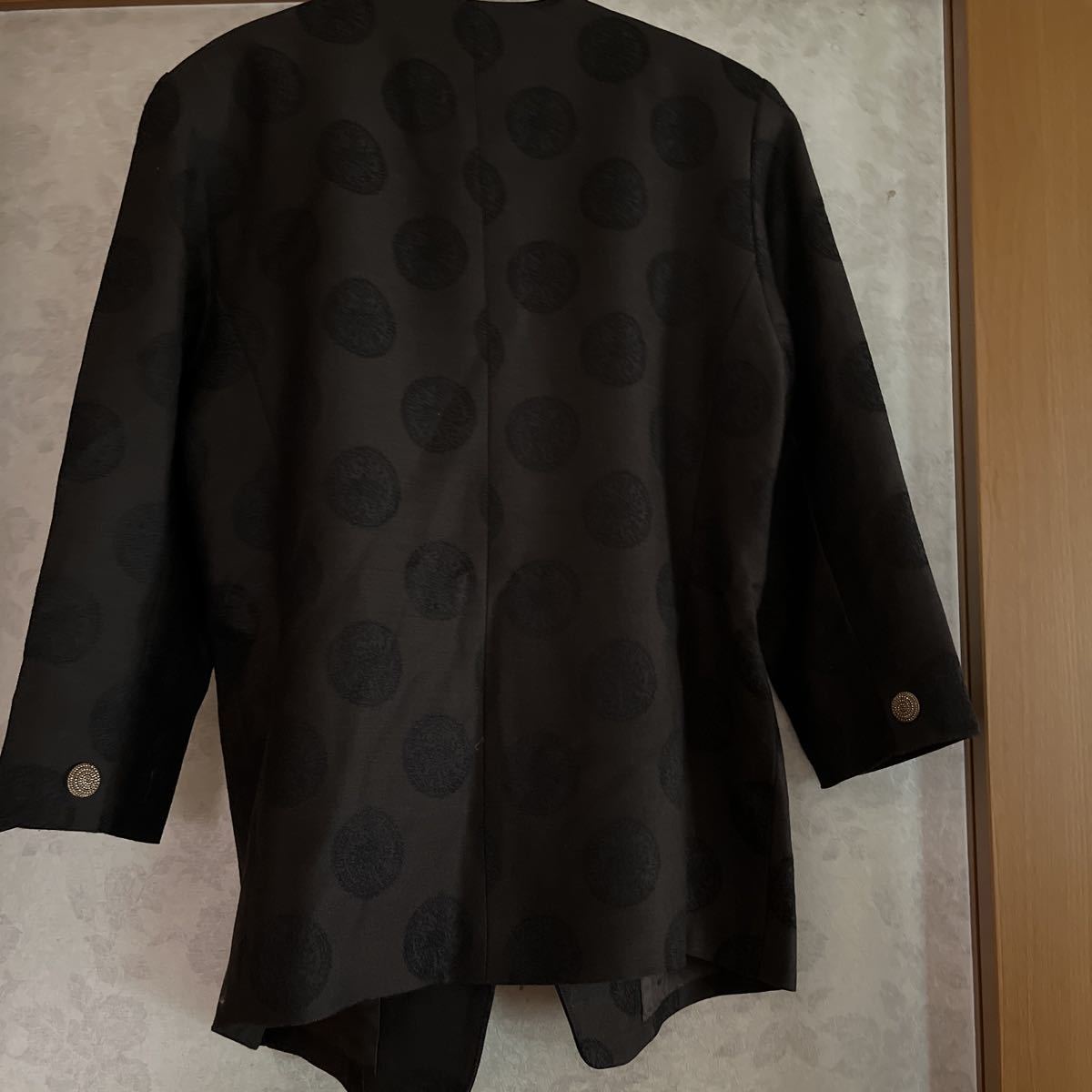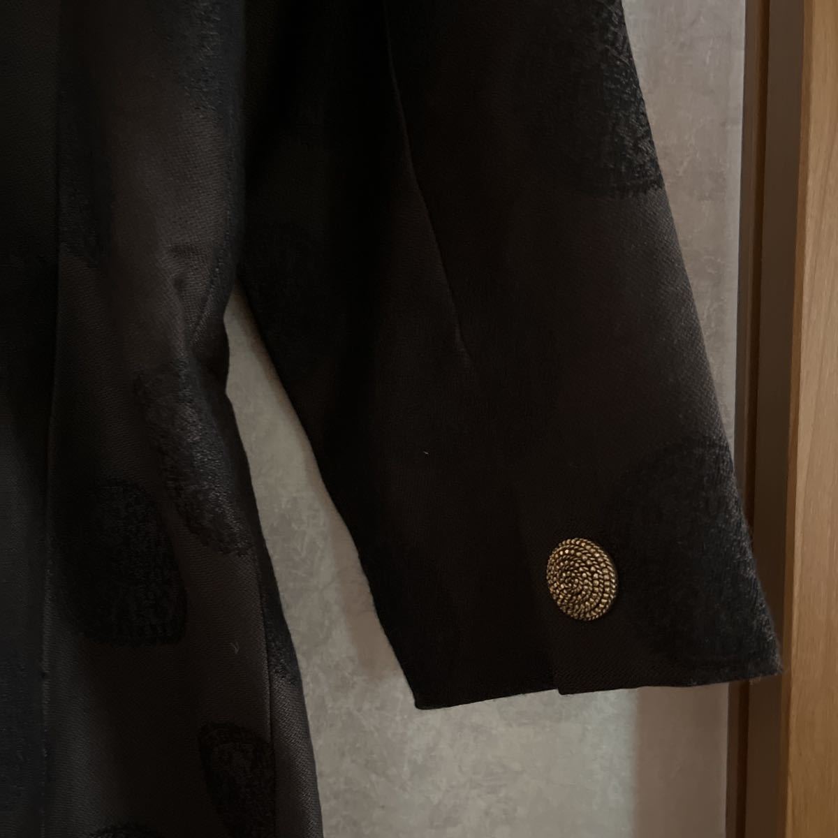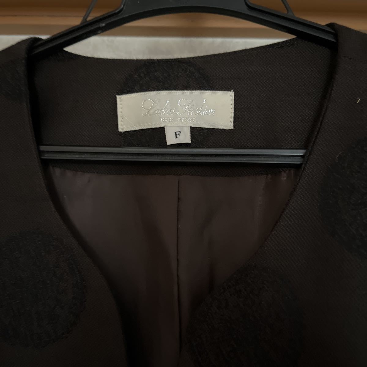 ★ジャケット★F 焦茶こげちゃ 総柄 絹49%毛46%レーヨン5%裏地ポリエステル100% 肩パッド入り ロング です。