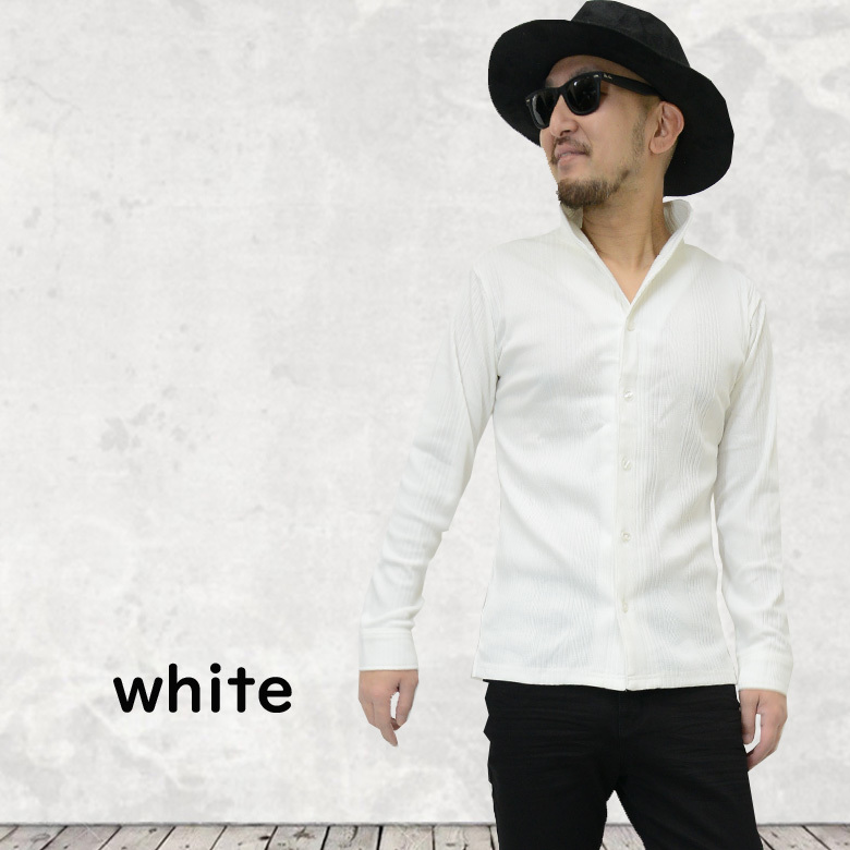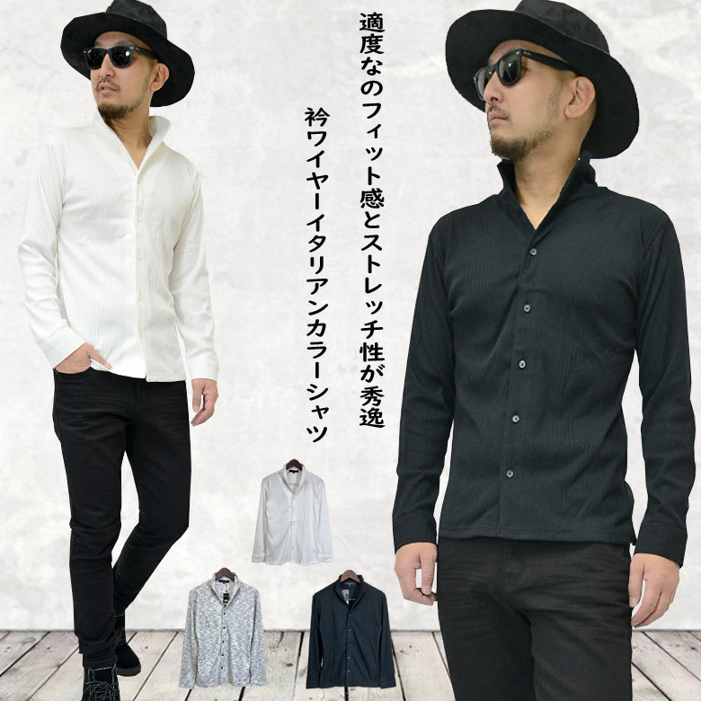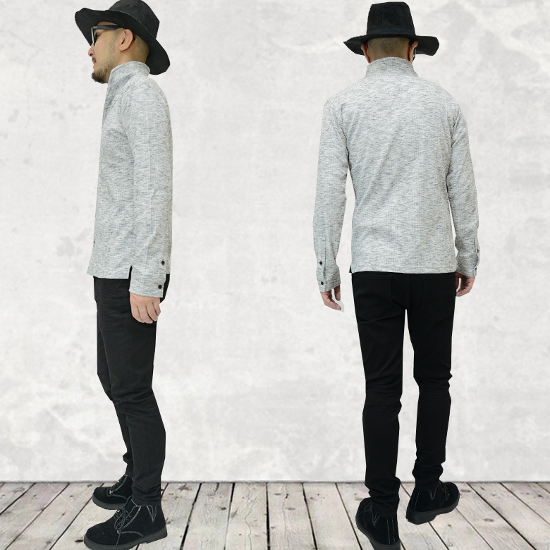 新作【衿ワイヤーストレッチ素材ランダムテレコイタリアンカラー長袖シャツ】が登場。