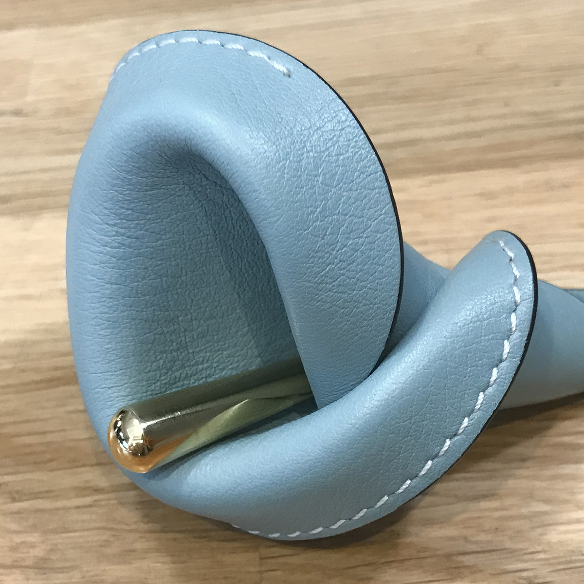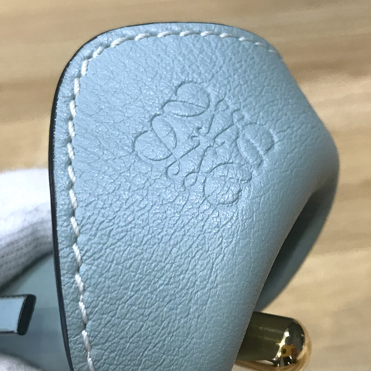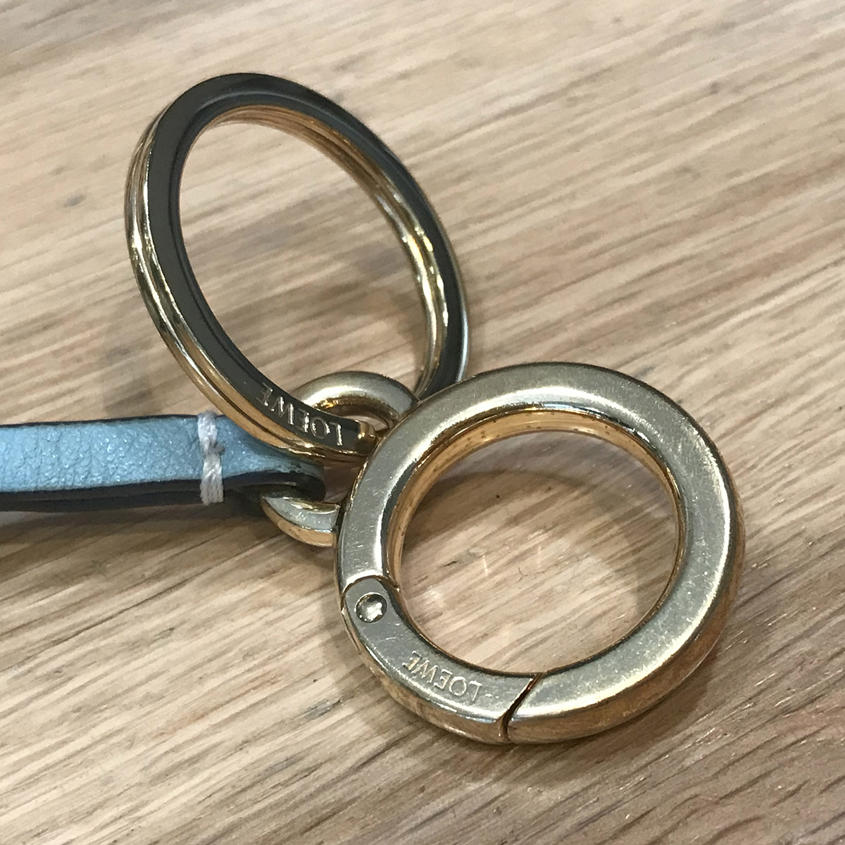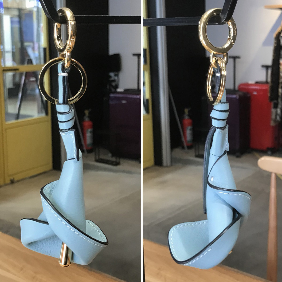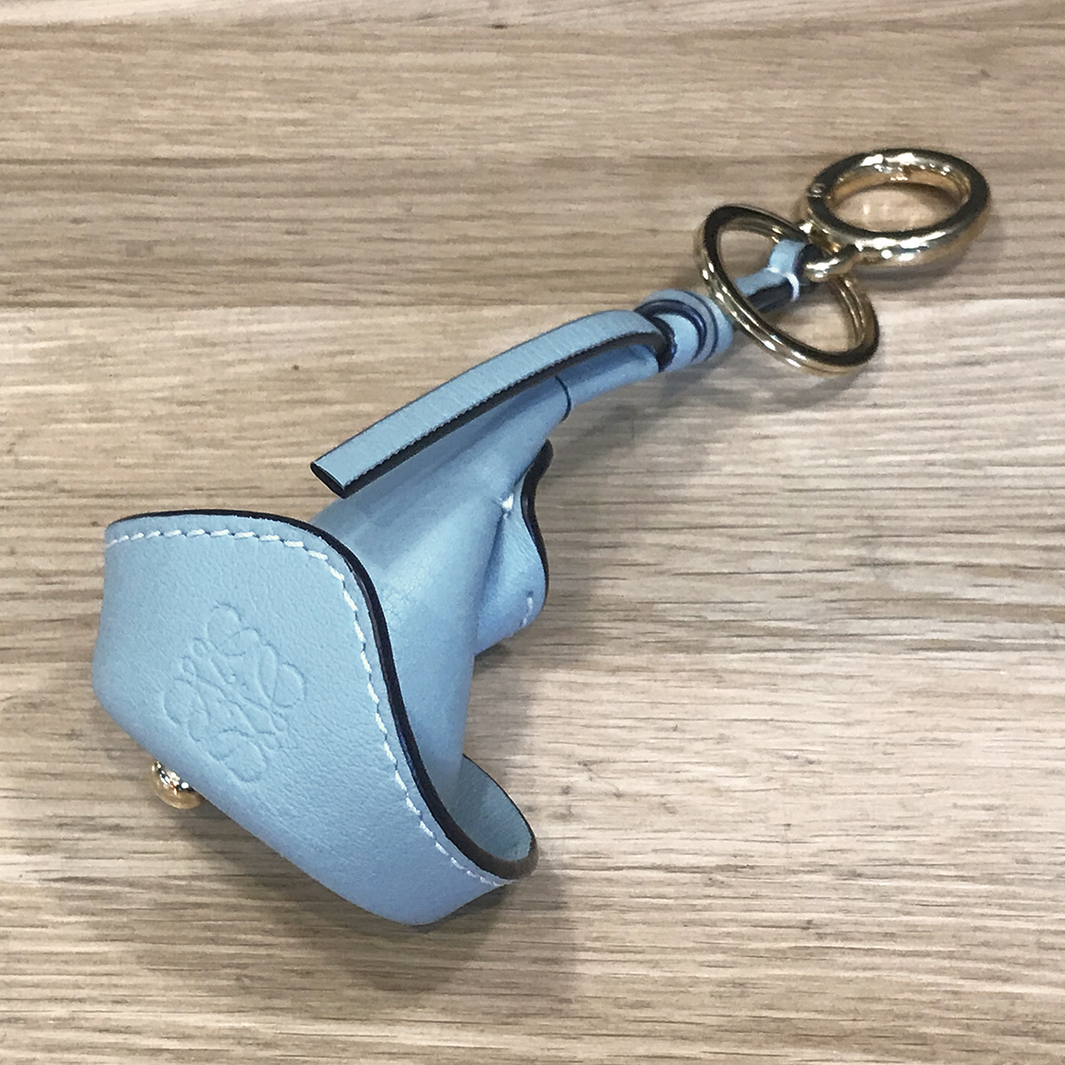 【超美品】ロエベ カラ バッグチャーム オランダカイウユリモチーフ ライトブルー キーリング レザー 09997
