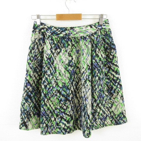 ジャスミン jasmin 膝丈スカート フレア 総柄 シフォン 黒 紫 ベージュ 38 *E403 レディース