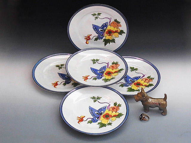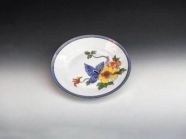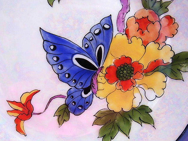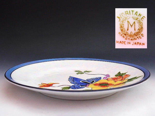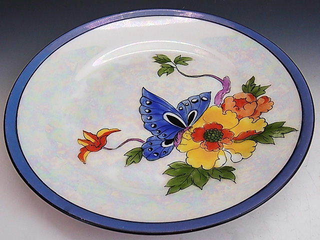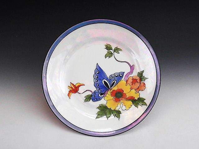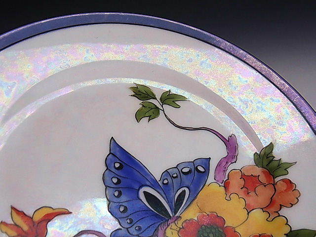 彩色 花蝶文様 ラスター彩 絵皿 ◆ オールドノリタケ