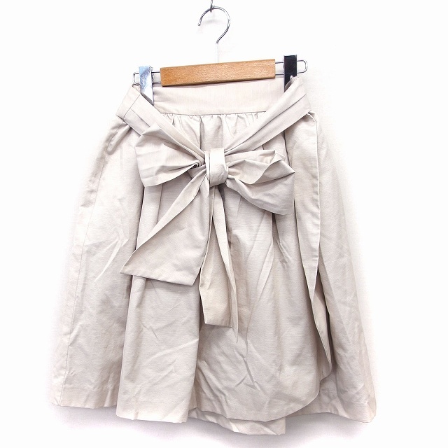 アーバンリサーチ URBAN RESEARCH COUTURE タック フレアスカート ひざ丈 リボン コットン 綿 M アイボリー 白 /FT25 レディース