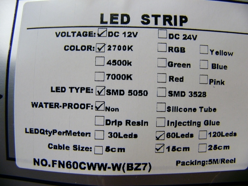 1m当たり60球の高輝度SMD5050型LEDを使用しています(5Mで300球)。