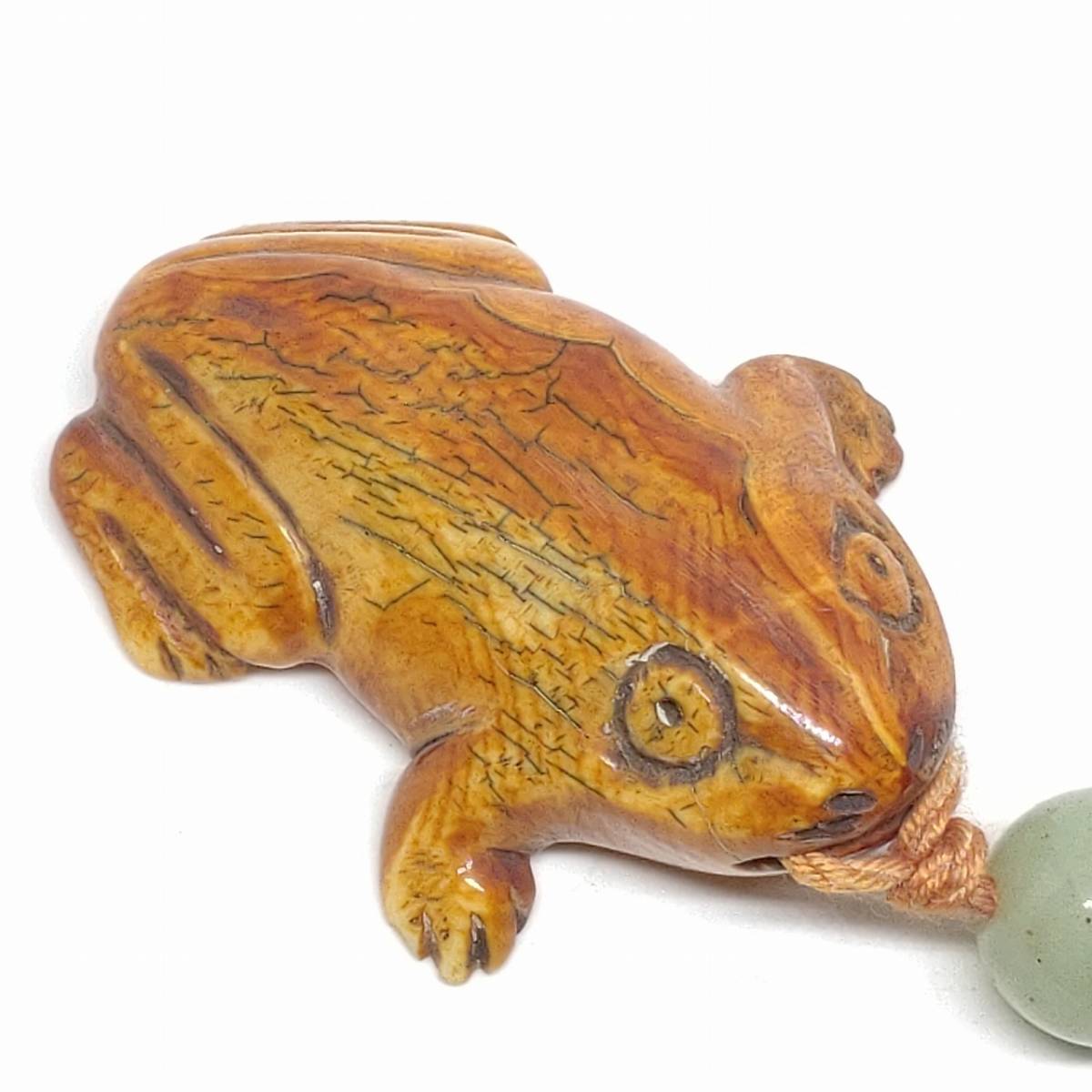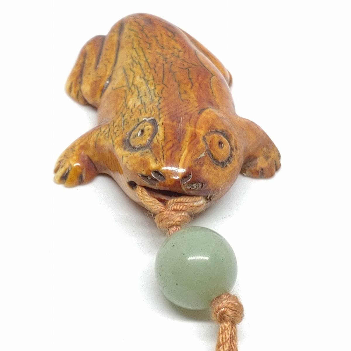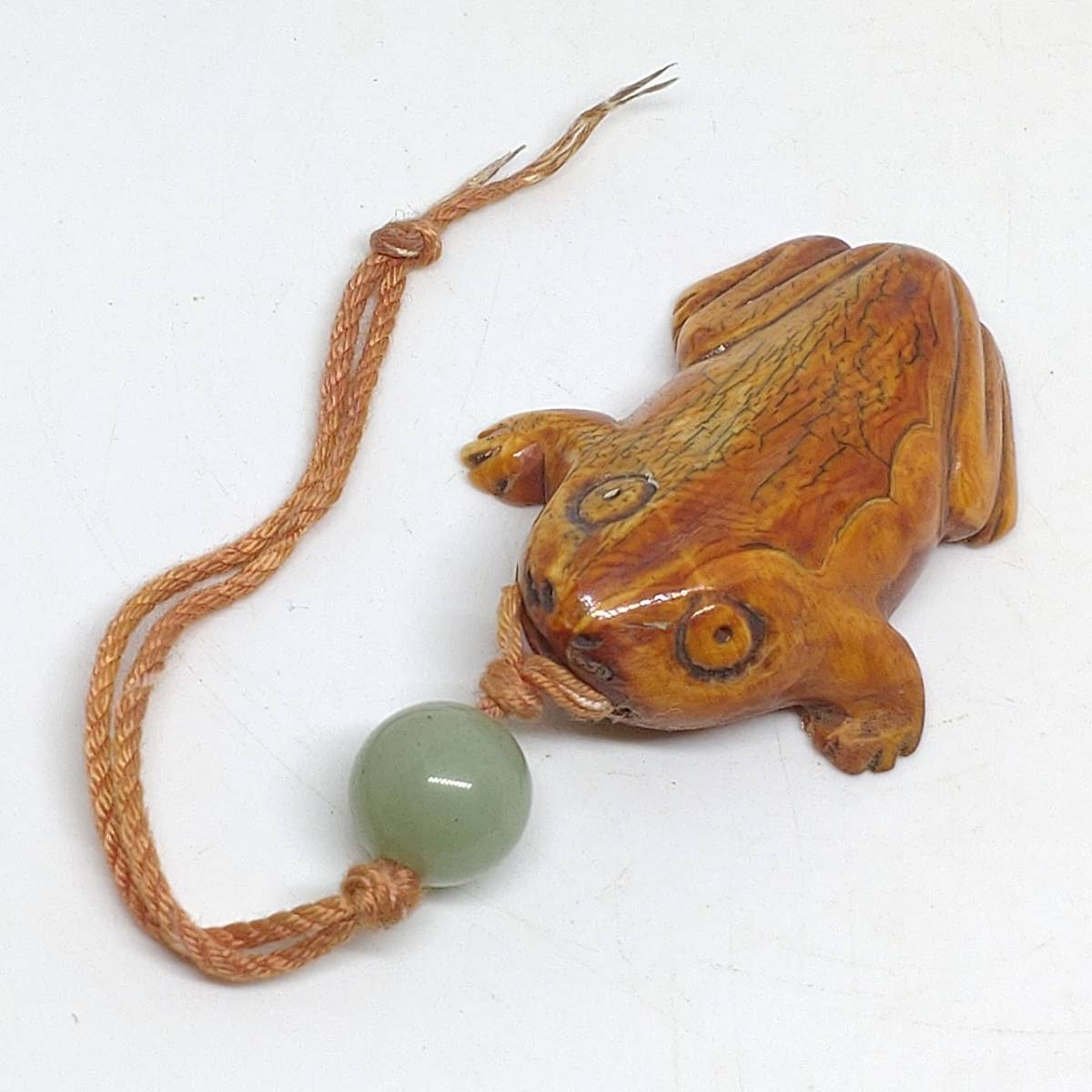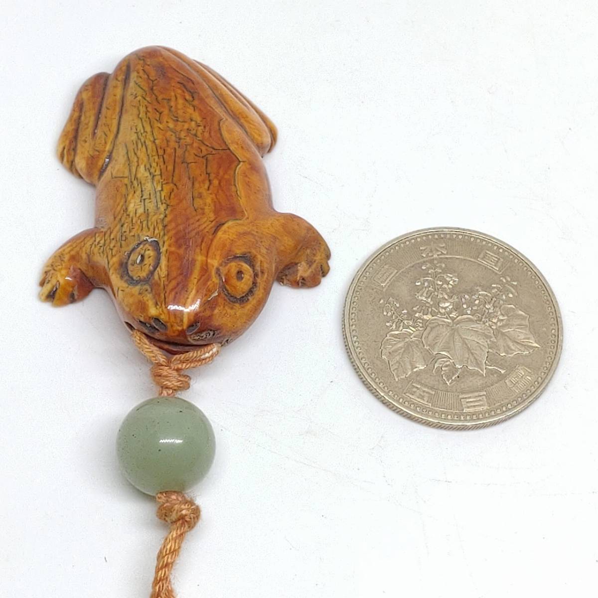カエルの根付 木製? 骨? かえる カエル 蛙 和風 小物 飾り 約4.5×3.5×1.3㎝ 約16g 【2979】【K306】【r】