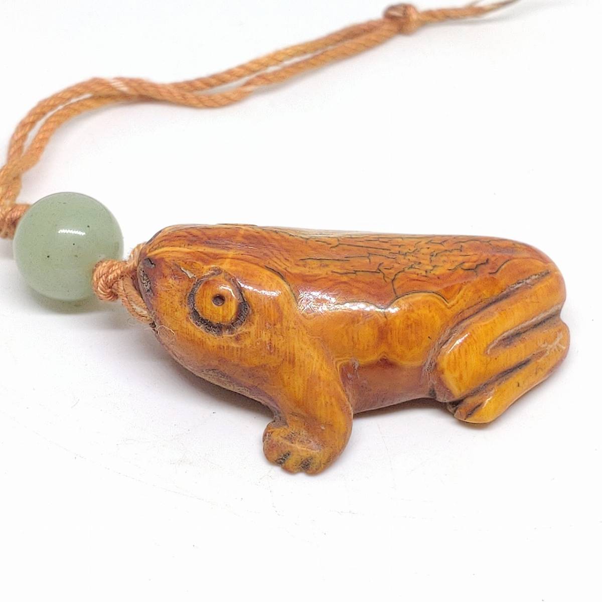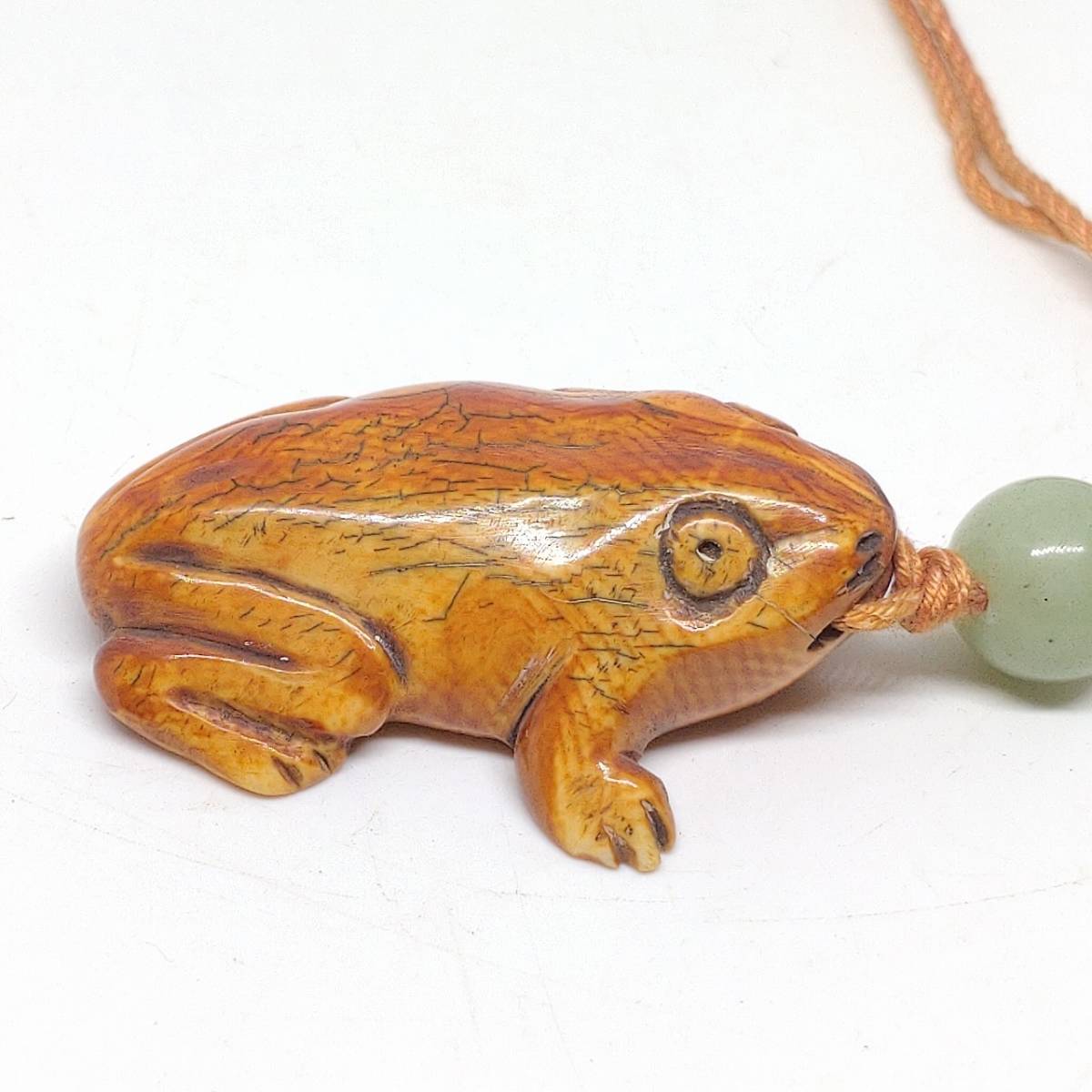 カエルの材質は木か骨だと思われますが、正確には不明です。