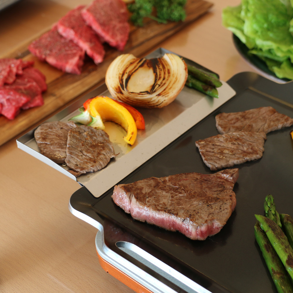 このサイドトレーをセットすることで焼き面スペースの拡充と、保温状態を保ちますので食材が焼け過ぎる心配もなく食事のペースを調整することもできます。