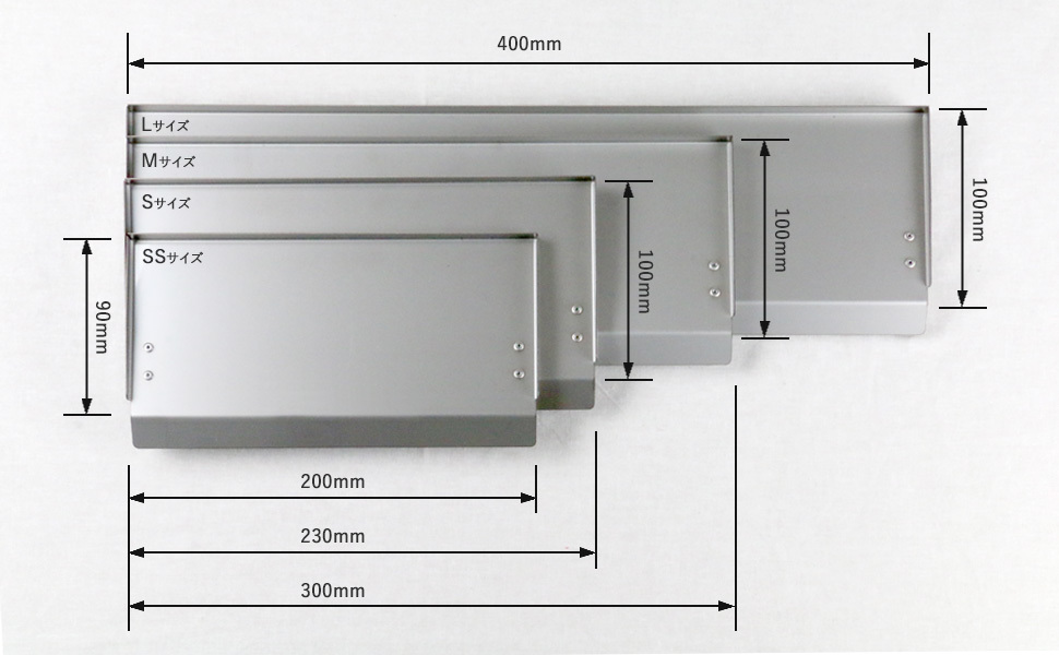 サイドトレーは横幅200~400mmまで4タイプのサイズを取り揃えており、ソロキャンプからイベントなどの大人数まで鉄板サイズに合わせてお選び頂けます。